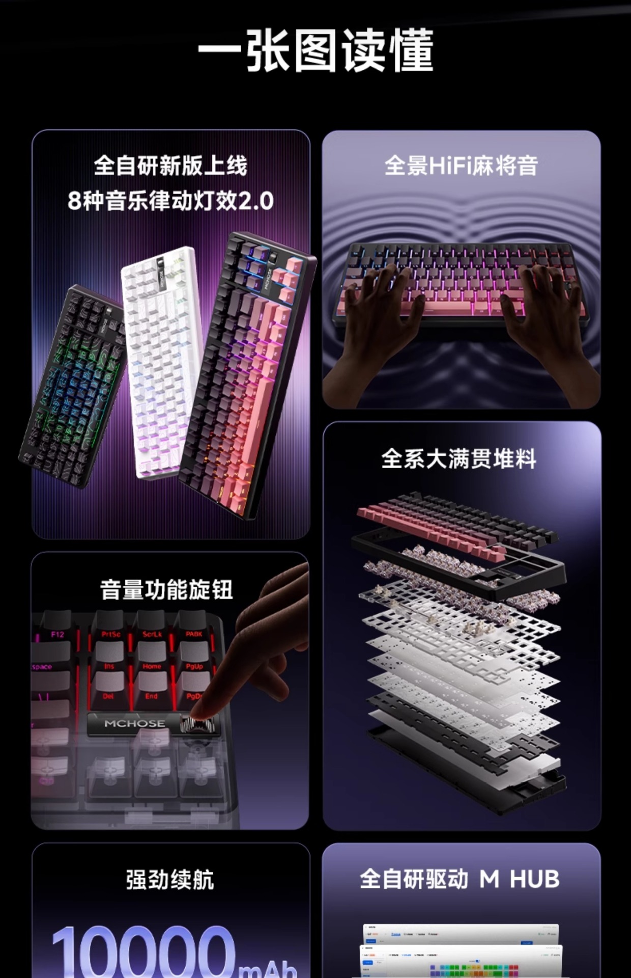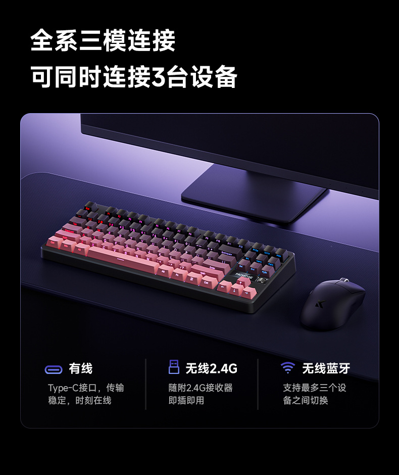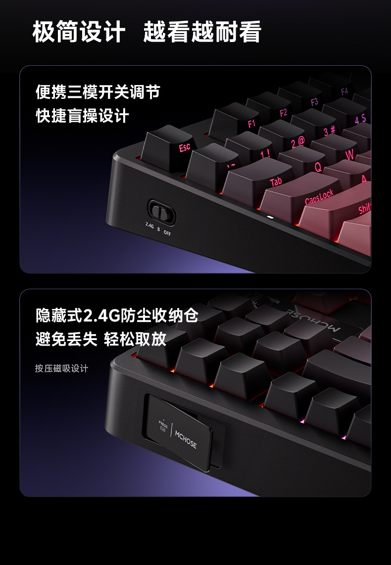 MCHOSE G87 기계식 키보드 측면 각인 맞춤형 무선 3모드 Bluetooth e-스포츠 게임 전용 사무실스토어 가기