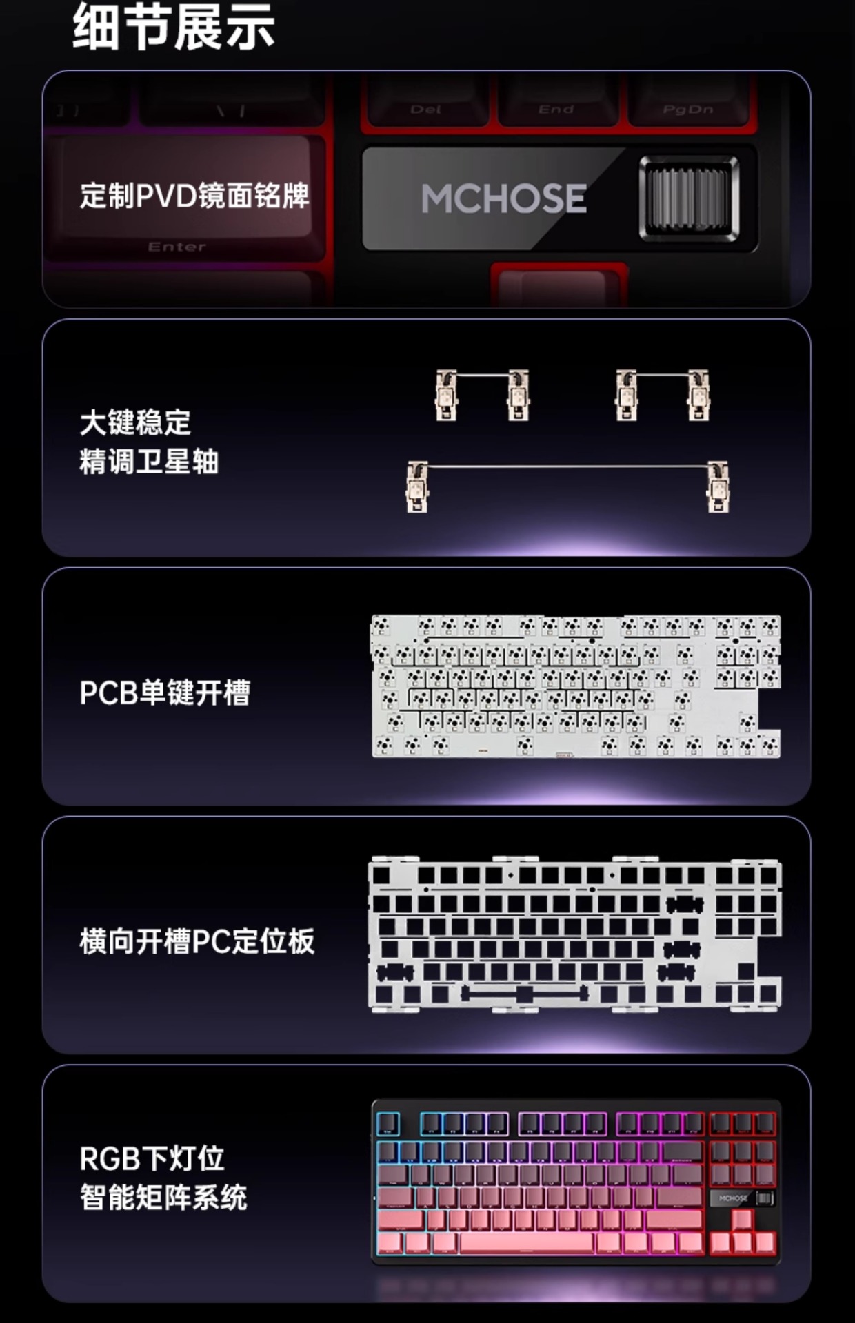 MCHOSE G87 기계식 키보드 측면 각인 맞춤형 무선 3모드 Bluetooth e-스포츠 게임 전용 사무실