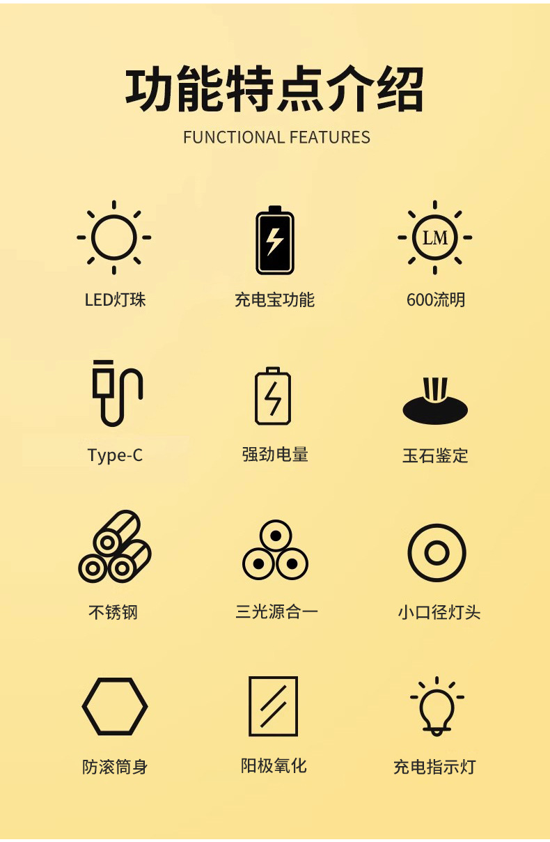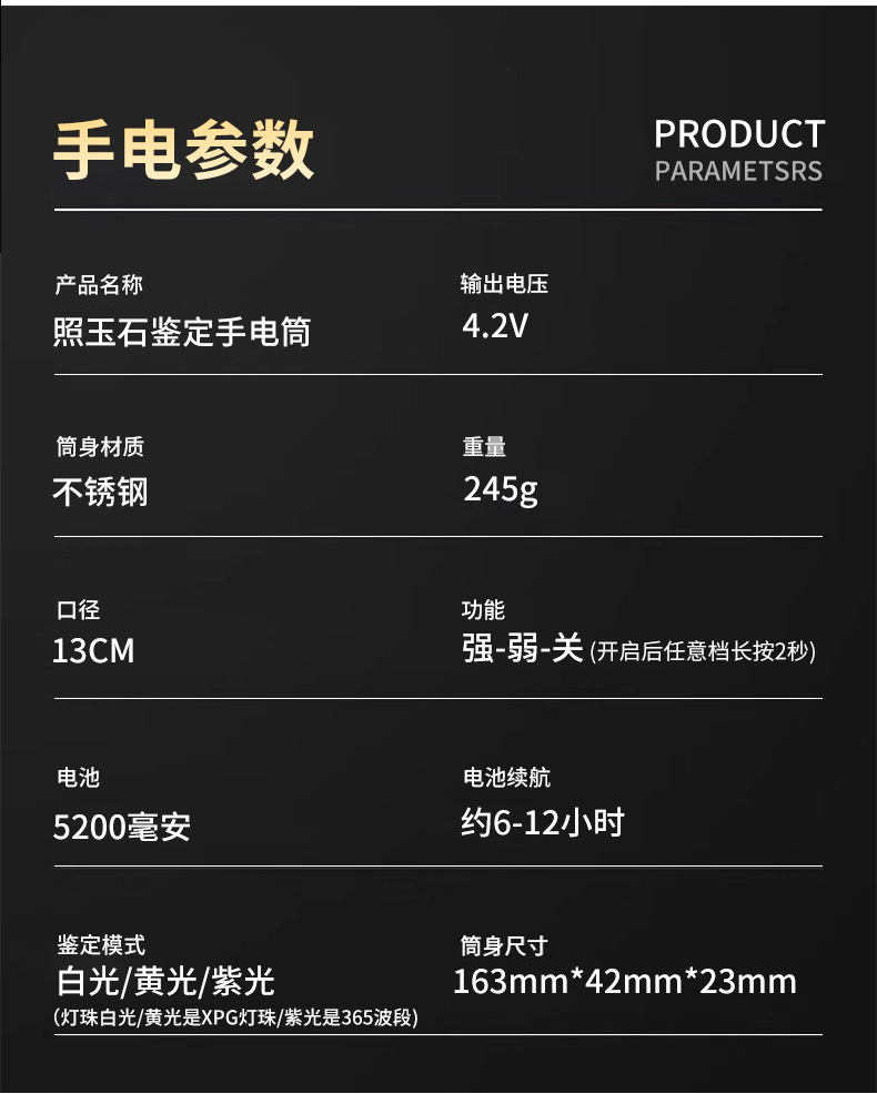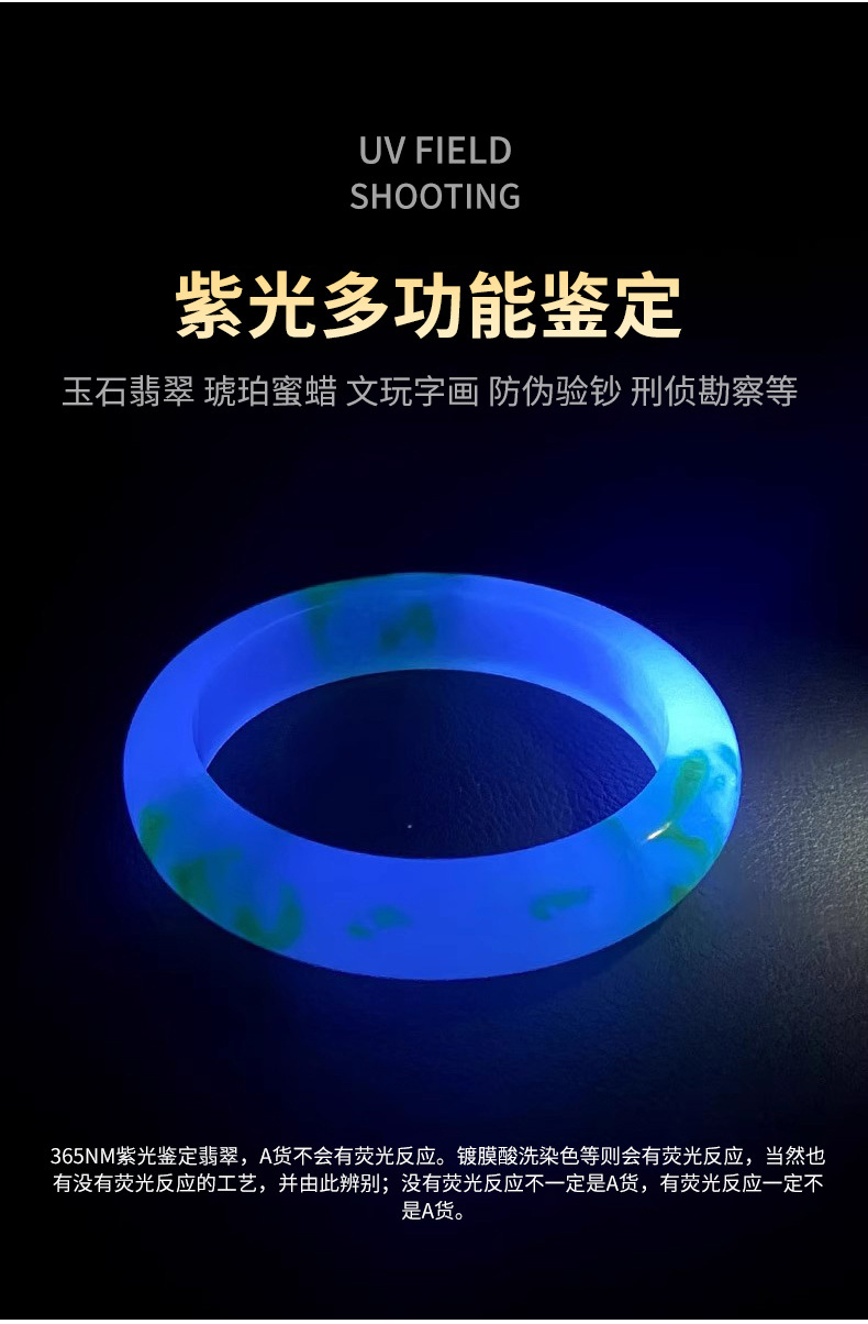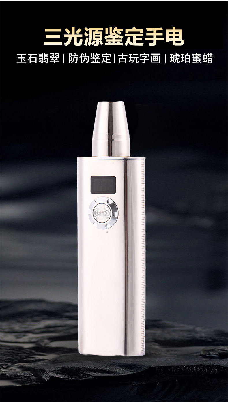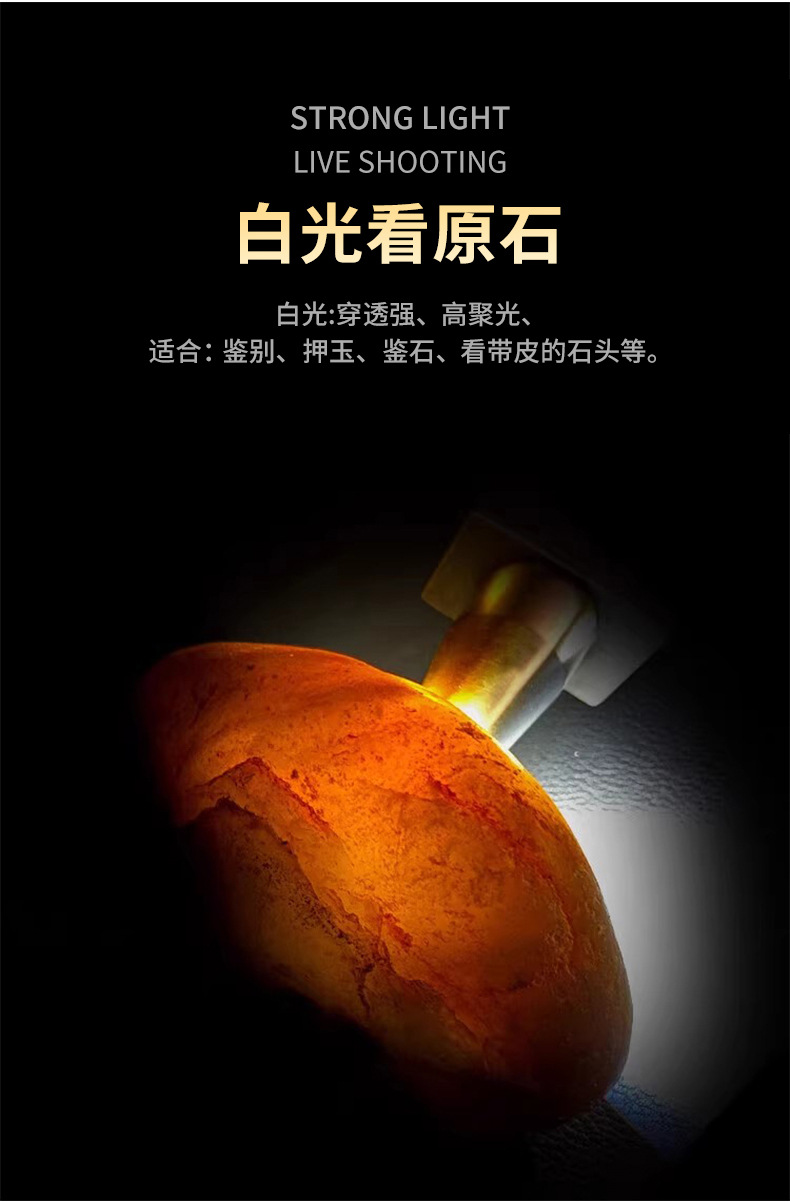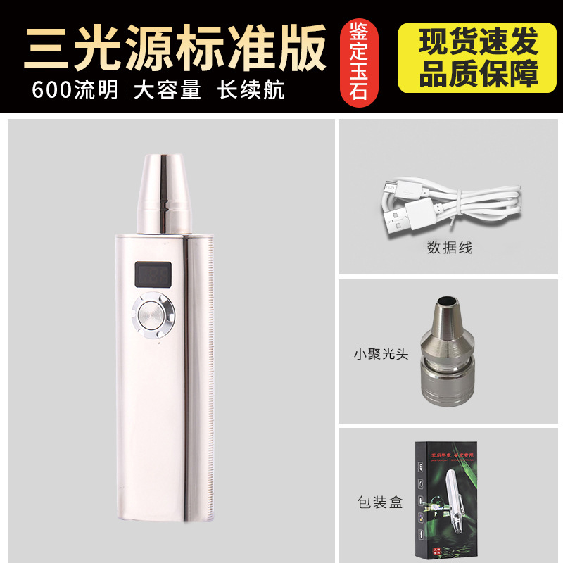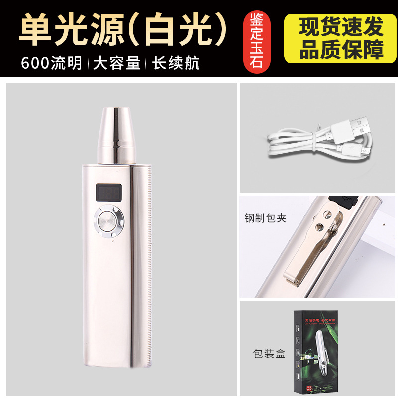 옥을 위한 스테인레스 스틸 3광원 특수 강한 빛 손전등, 옥 원석, 밀랍 전문 식별 손전등스토어 가기