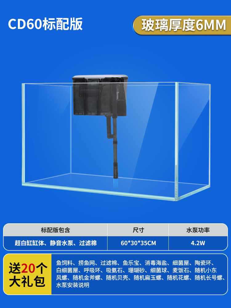 • 60x30x35cm 초백색 탱크 + 필터 펌프/무료 선물 패키지