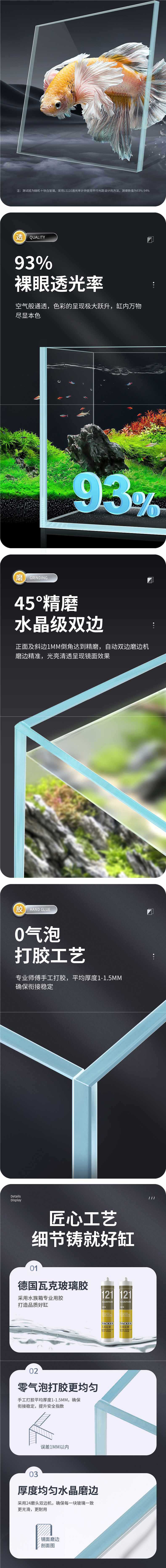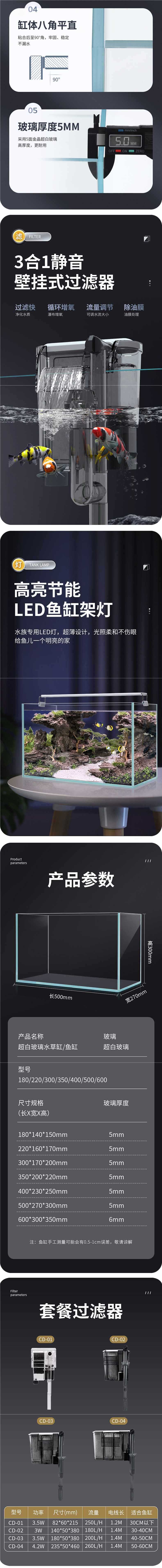 새로운 슈퍼 화이트 탱크 직사각형 유리 금붕어 탱크 홈 거실 작은 데스크탑 거북이 탱크 생태 잔디 탱크