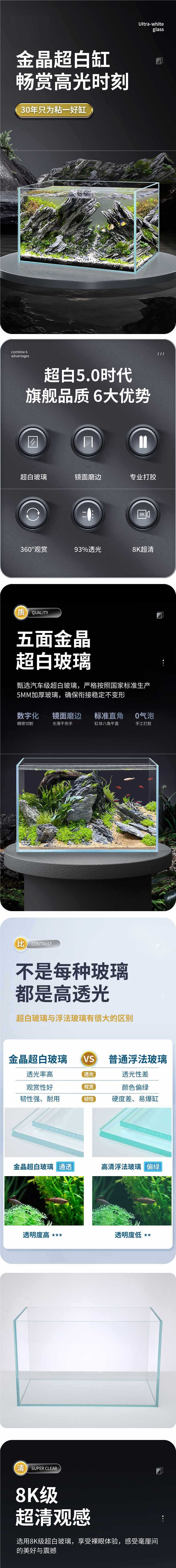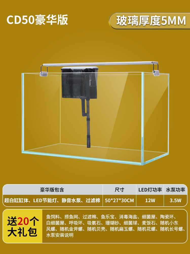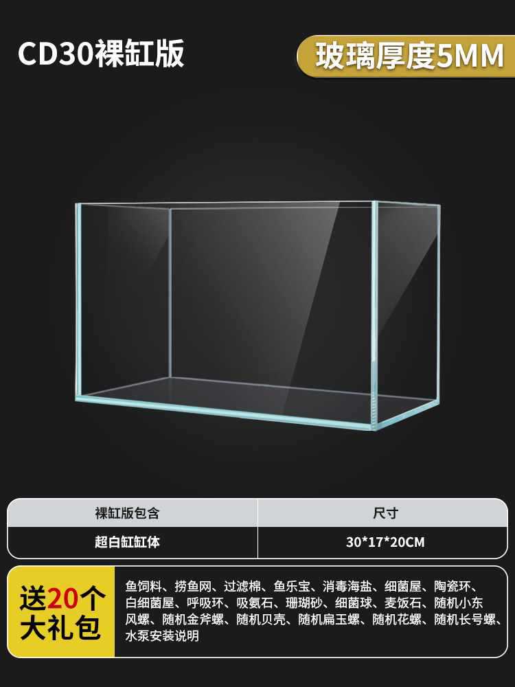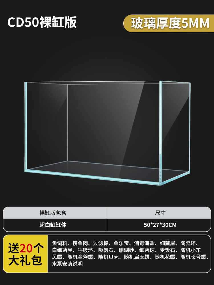 새로운 슈퍼 화이트 탱크 직사각형 유리 금붕어 탱크 홈 거실 작은 데스크탑 거북이 탱크 생태 잔디 탱크스토어 가기