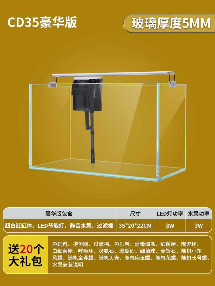 • 35x20x22cm 초백색 탱크 + 필터 펌프 + 조명 LED/무료 선물 패키지