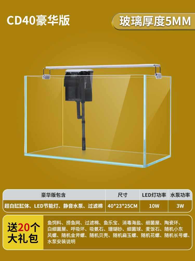 • 40x23x25cm 초백색 탱크 + 필터 펌프 + 조명 LED/무료 선물 패키지