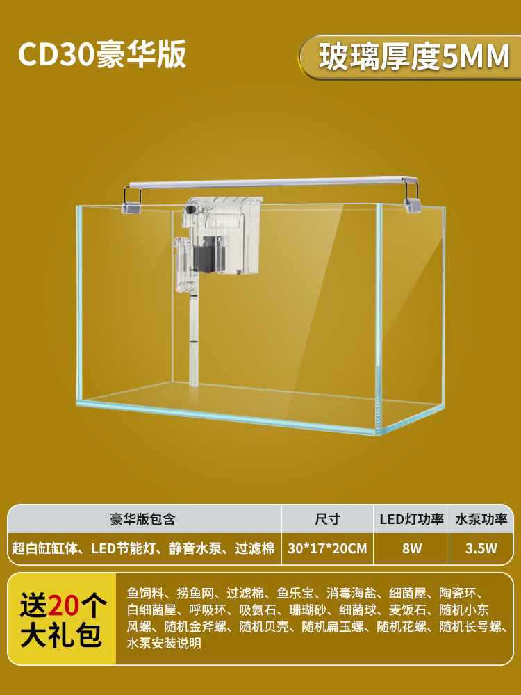 • 30x17x20cm 초백색 탱크 + 필터 펌프 + 조명 LED/무료 선물 패키지