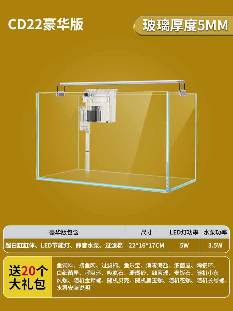 • 22x16x17cm 초백색 탱크 + 필터 펌프 + 조명 LED/무료 선물 패키지