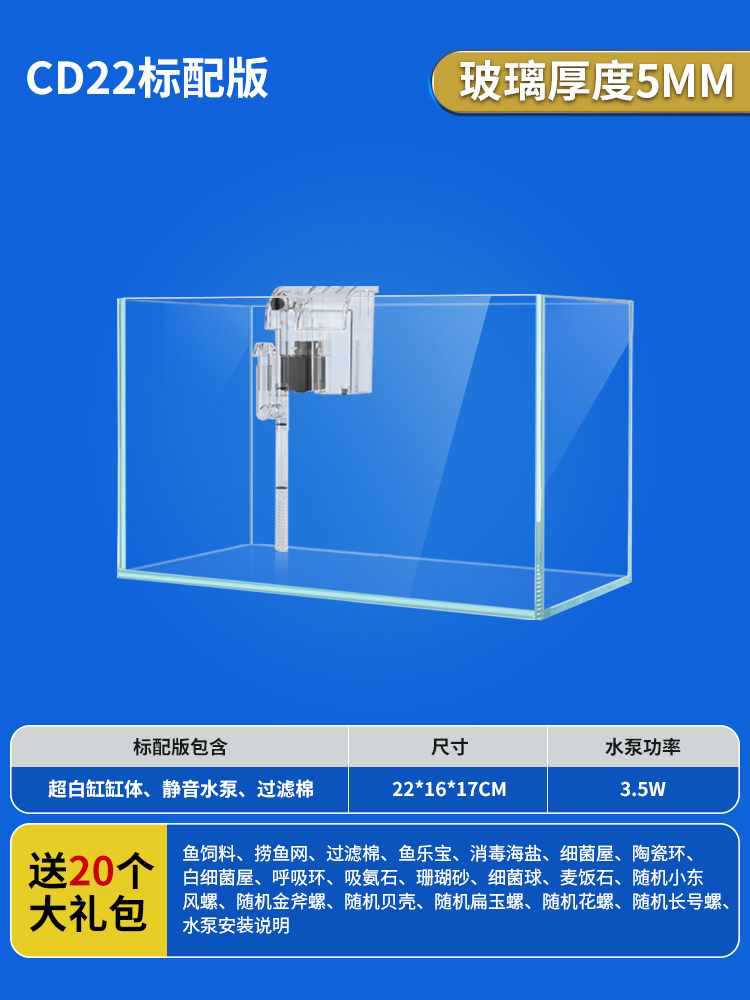 • 22x16x17cm 초백색 탱크 + 필터 펌프/선물 패키지