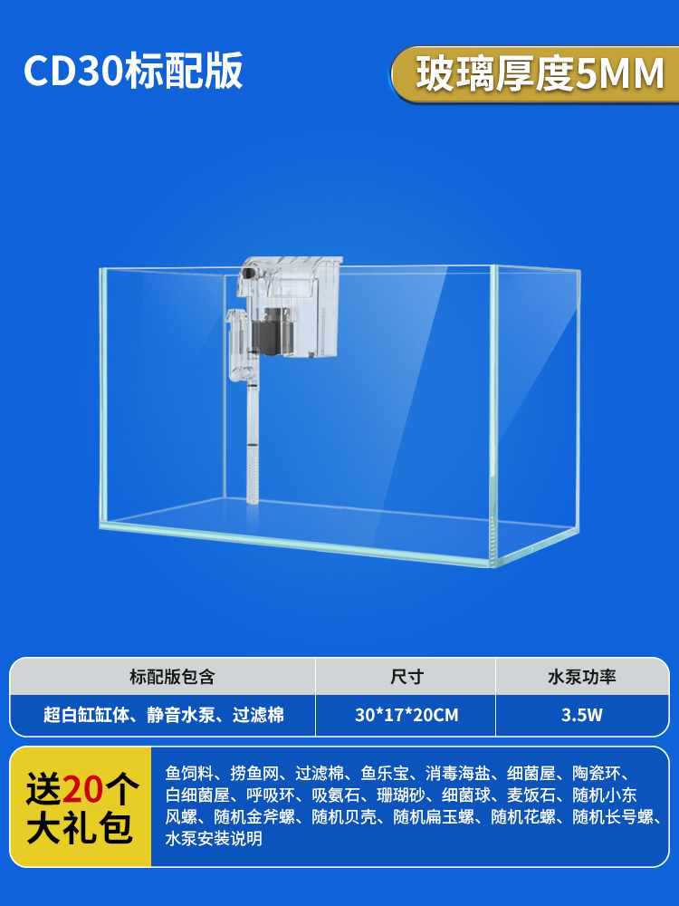 • 30x17x20cm 초백색 탱크 + 필터 펌프/선물 패키지
