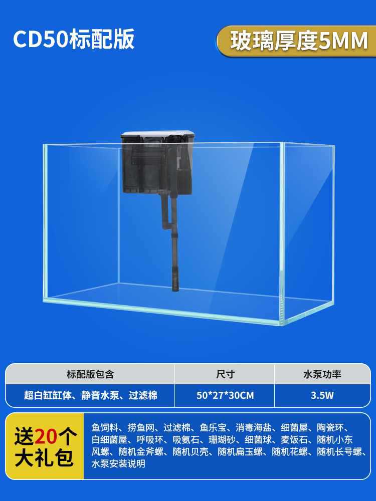 • 50x27x30cm 초백색 탱크 + 필터 펌프/선물 패키지