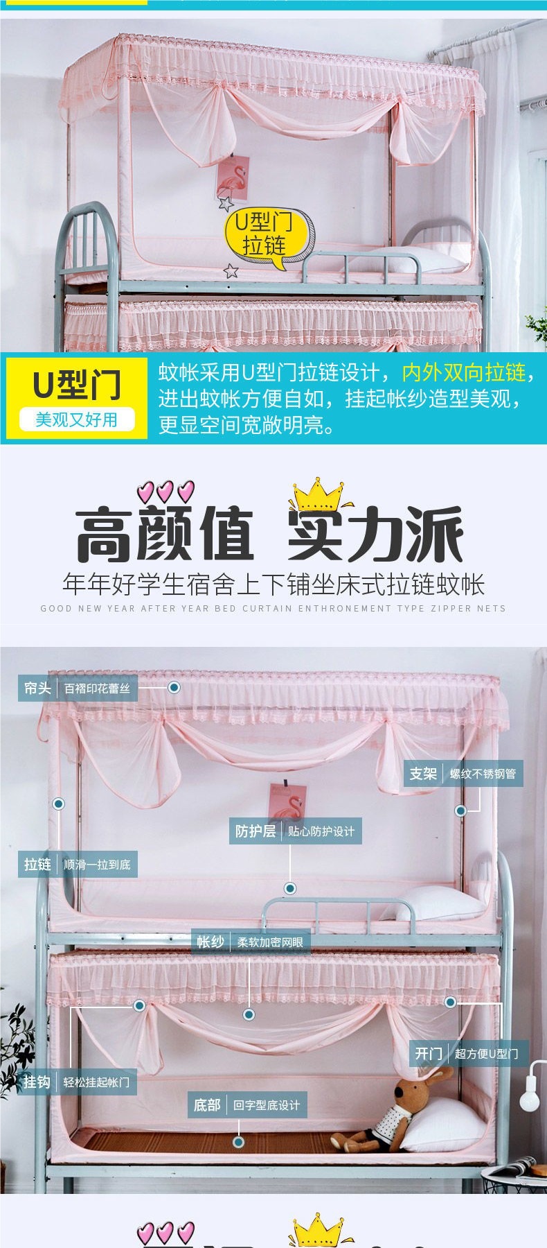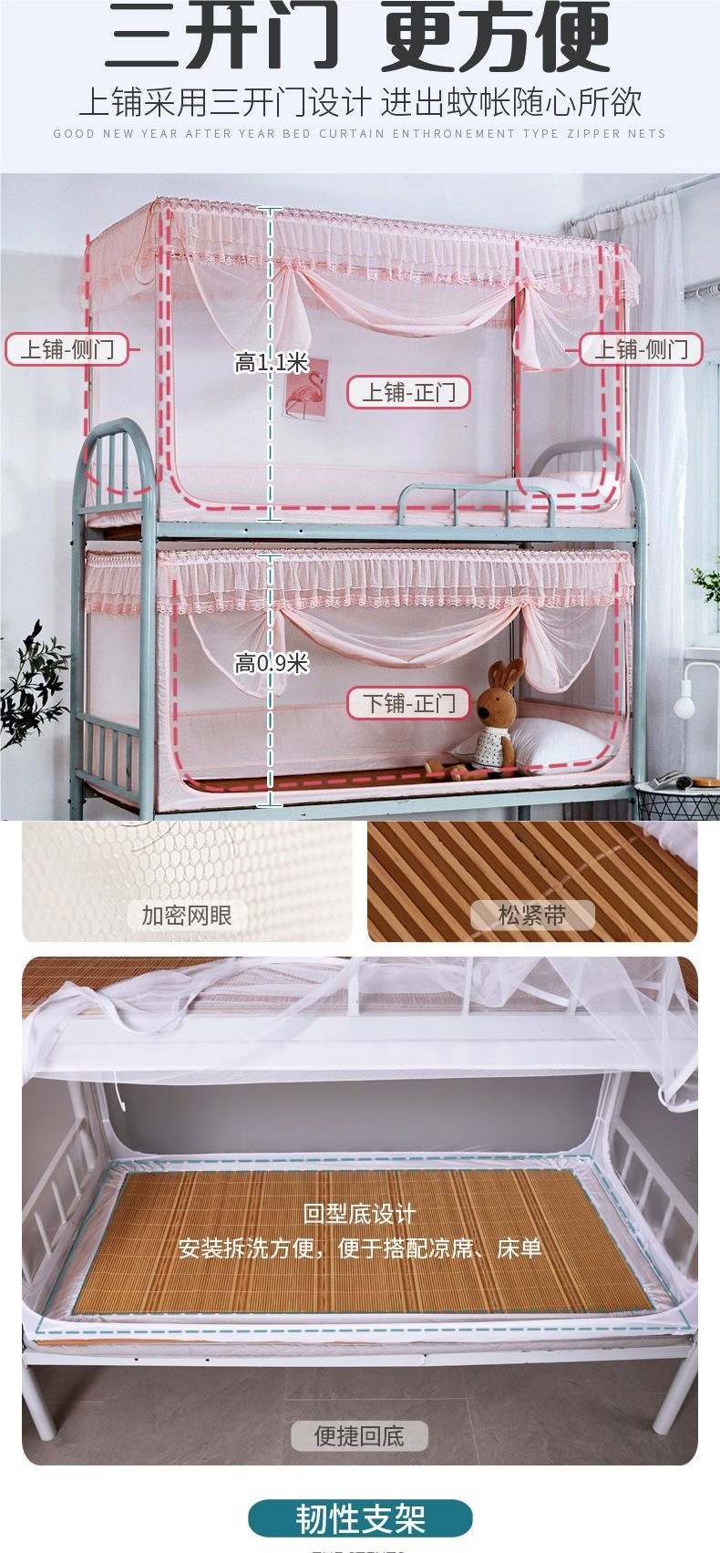 학생용 3도어 이층침대 모기장 침대 범용 0.8m 0.9m 기숙사 이층침대 싱글 침대 철제
