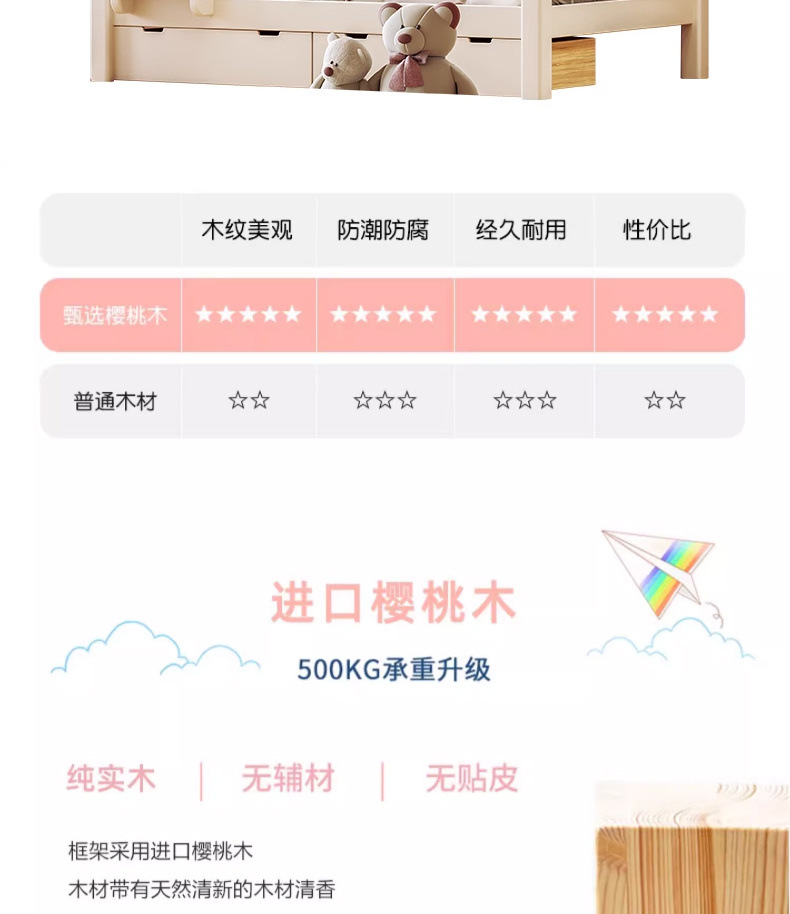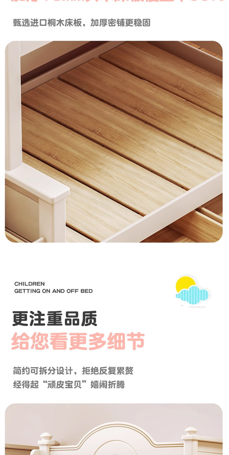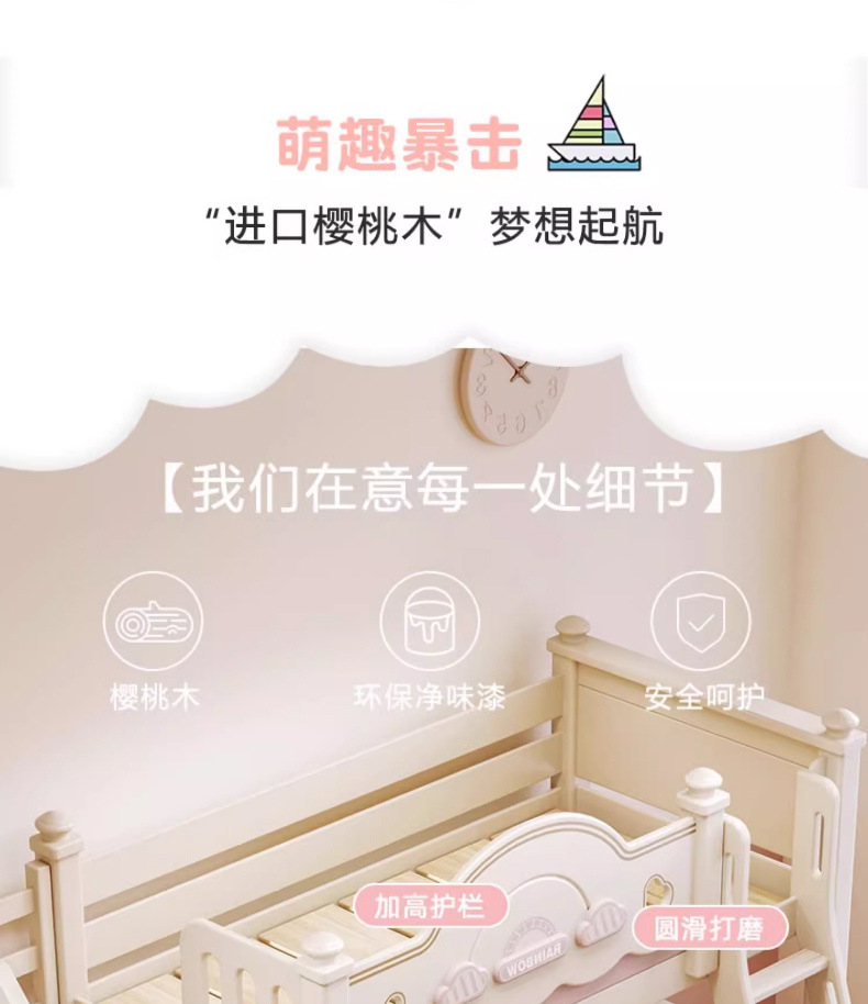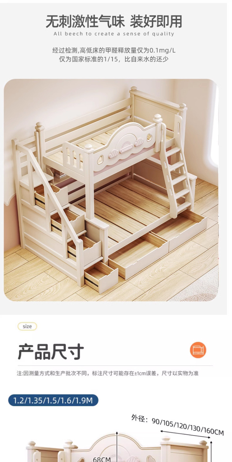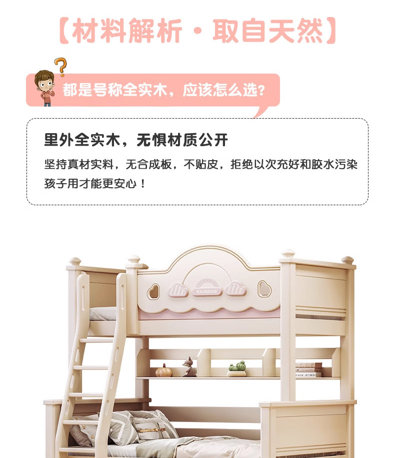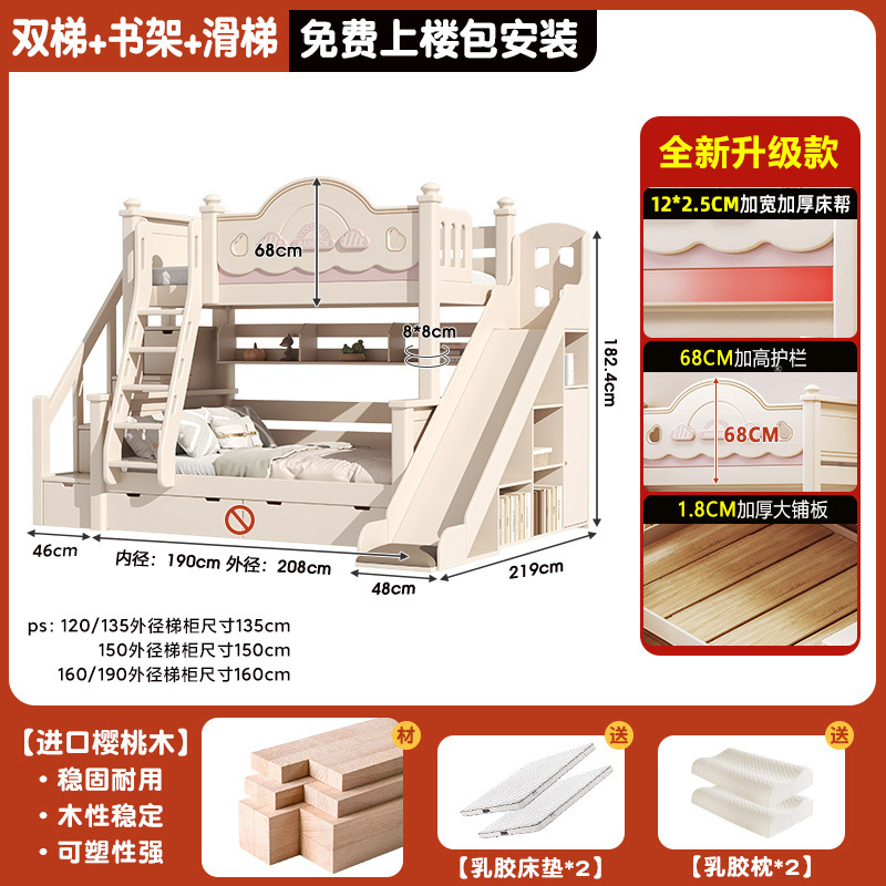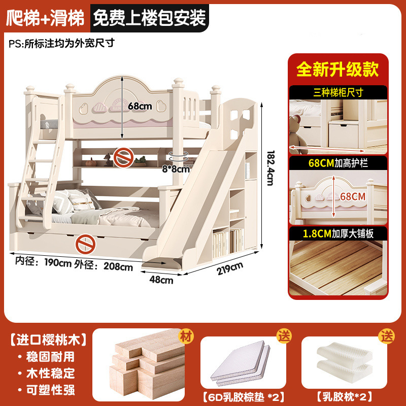 2층 침대, 원목 이층 침대, 소년 소녀용 체리나무 높낮이 침대, 소형 아파트 어린이 침대