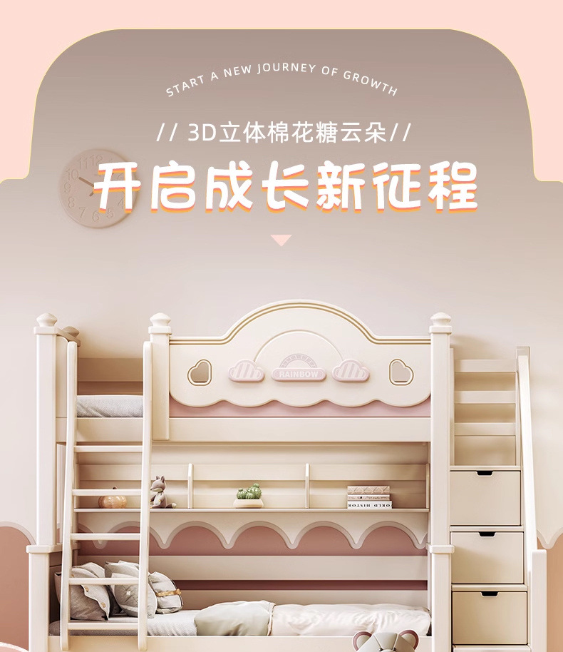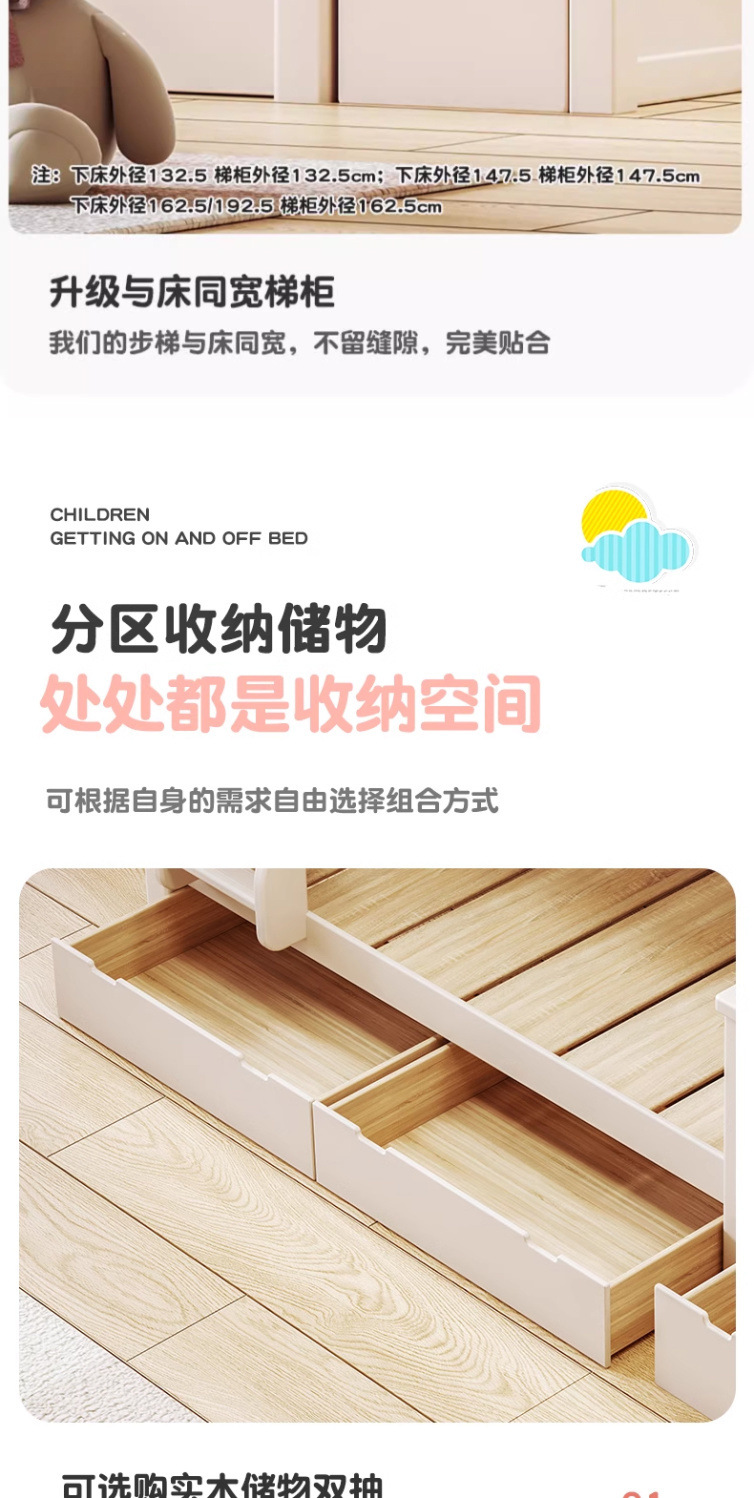 • 사다리 캐비닛 + 슬라이드 + 책장 + 더블 서랍 + 매트리스 * 2