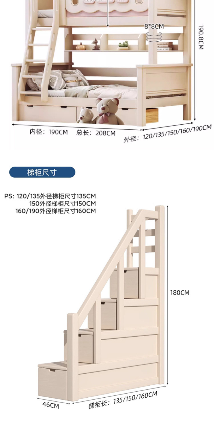 • 이중 사다리 모델 + 이중 서랍 + 매트리스*2