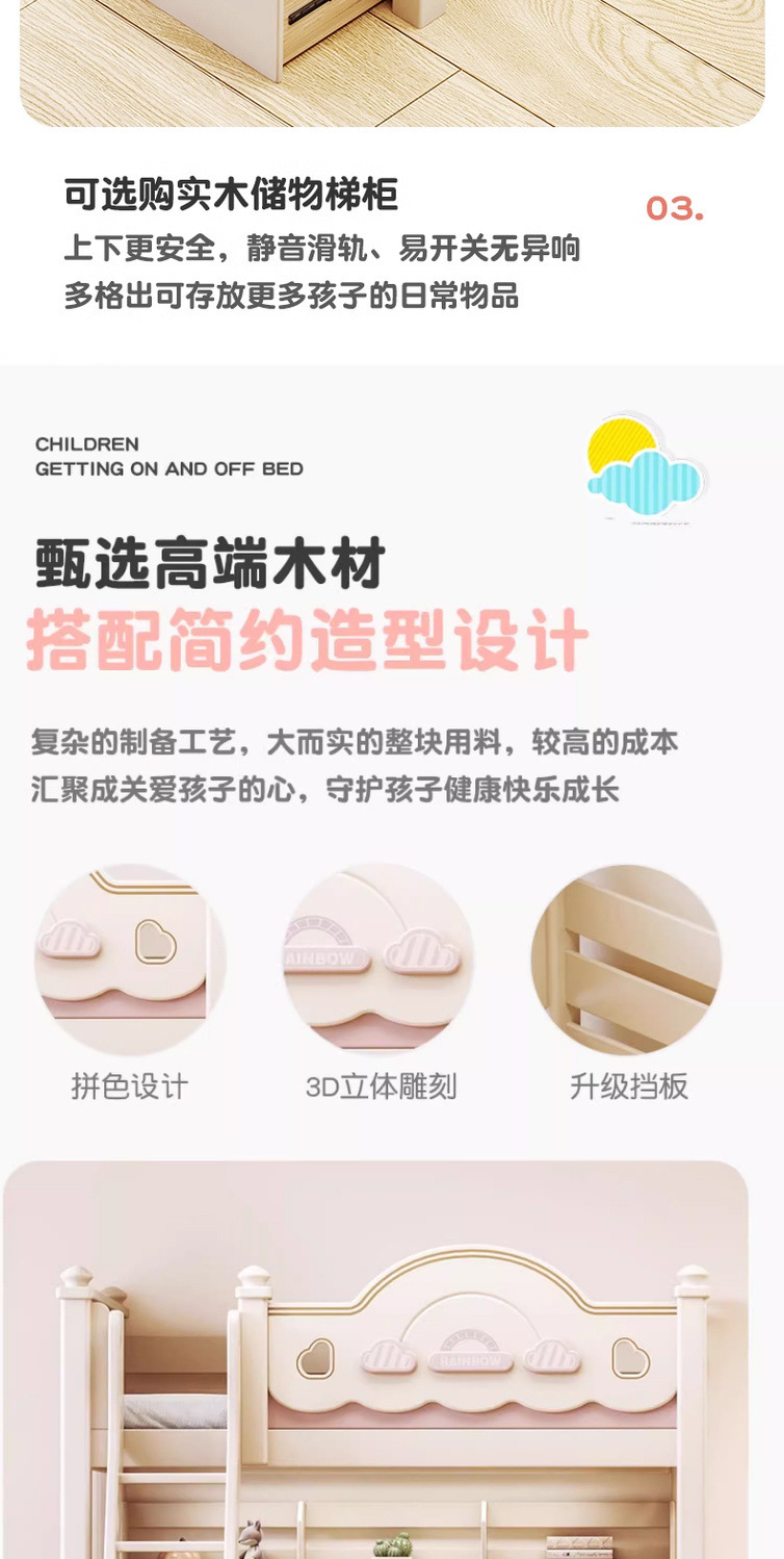2층 침대, 원목 이층 침대, 소년 소녀용 체리나무 높낮이 침대, 소형 아파트 어린이 침대스토어 가기
