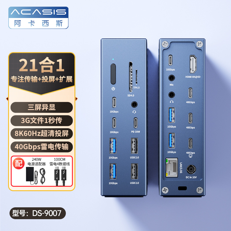 • Thunderbolt 4 확장 도크[Thunderbolt 4 인터페이스*2+HDMI2.1+USB+기가비트 이더넷 포트](240W 전원 공급 장치/드라이버 없음)
