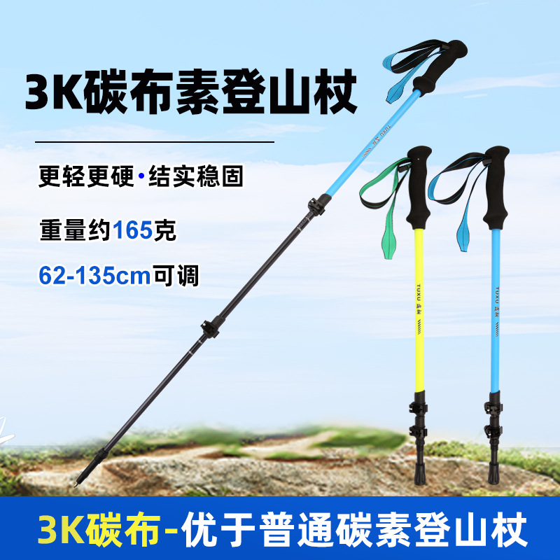 Tuxi 탄소 섬유 트레킹 스틱 탄소 텔레스코픽 지팡이 전문 등산 장비 야외 하이킹 텔레스코픽 스키 스틱