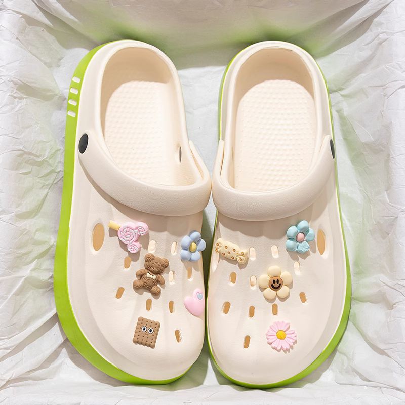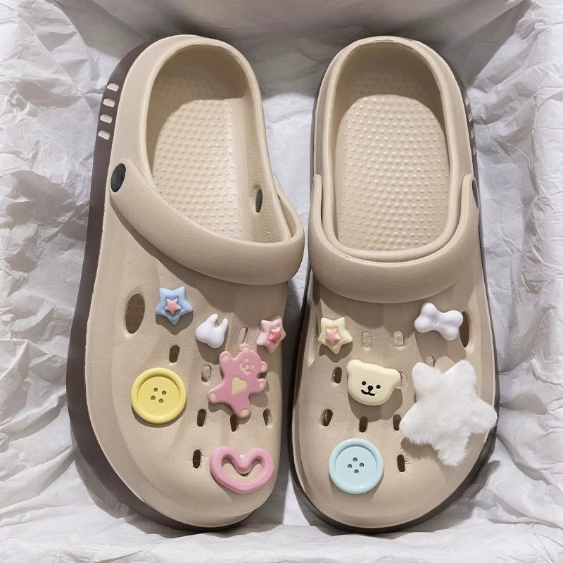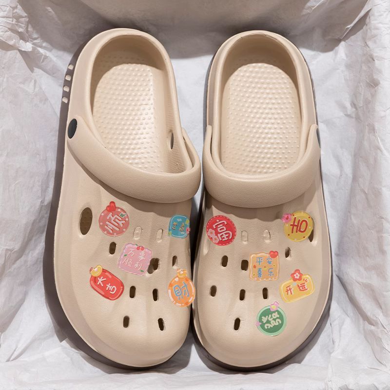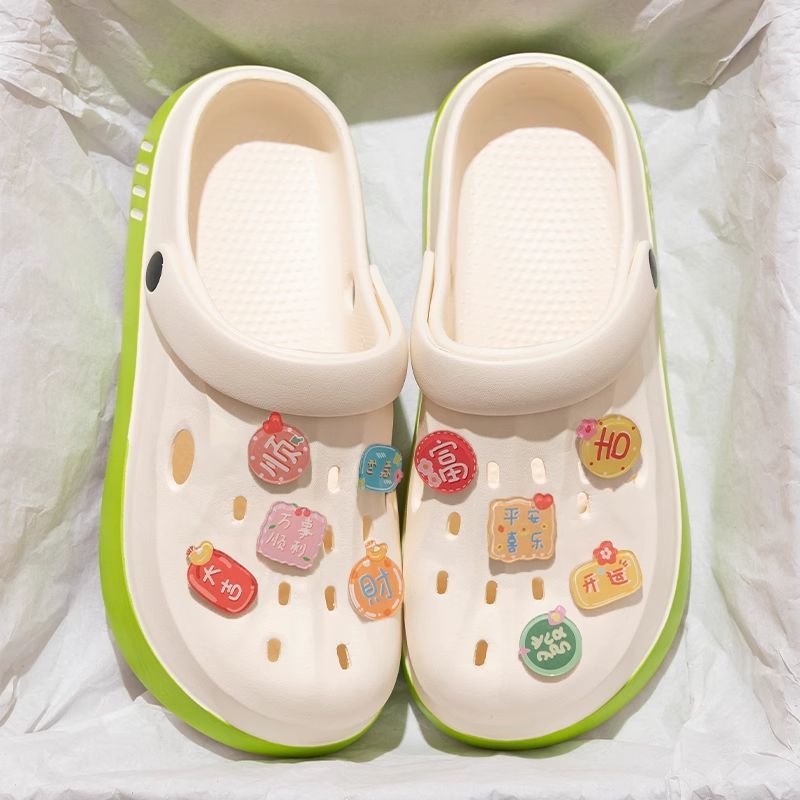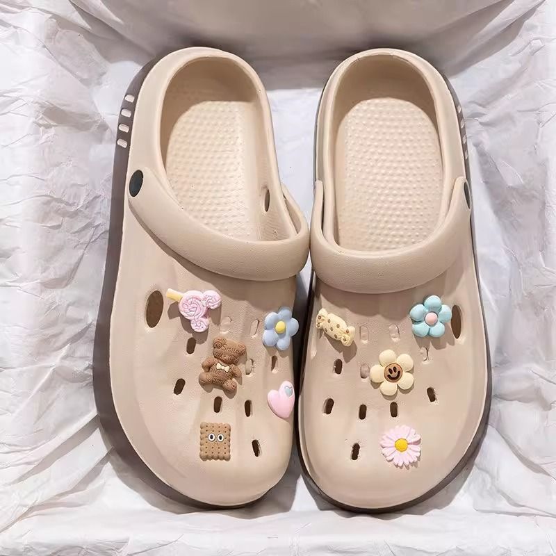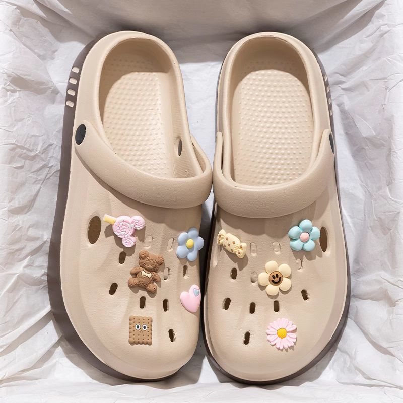 여성용 Croc 신발 2025 새로운 여름 겉옷 해변 두꺼운 밑창 에바 샌들 여성용 미끄럼 방지 냄새 나지 않는 발 커플 슬리퍼스토어 가기