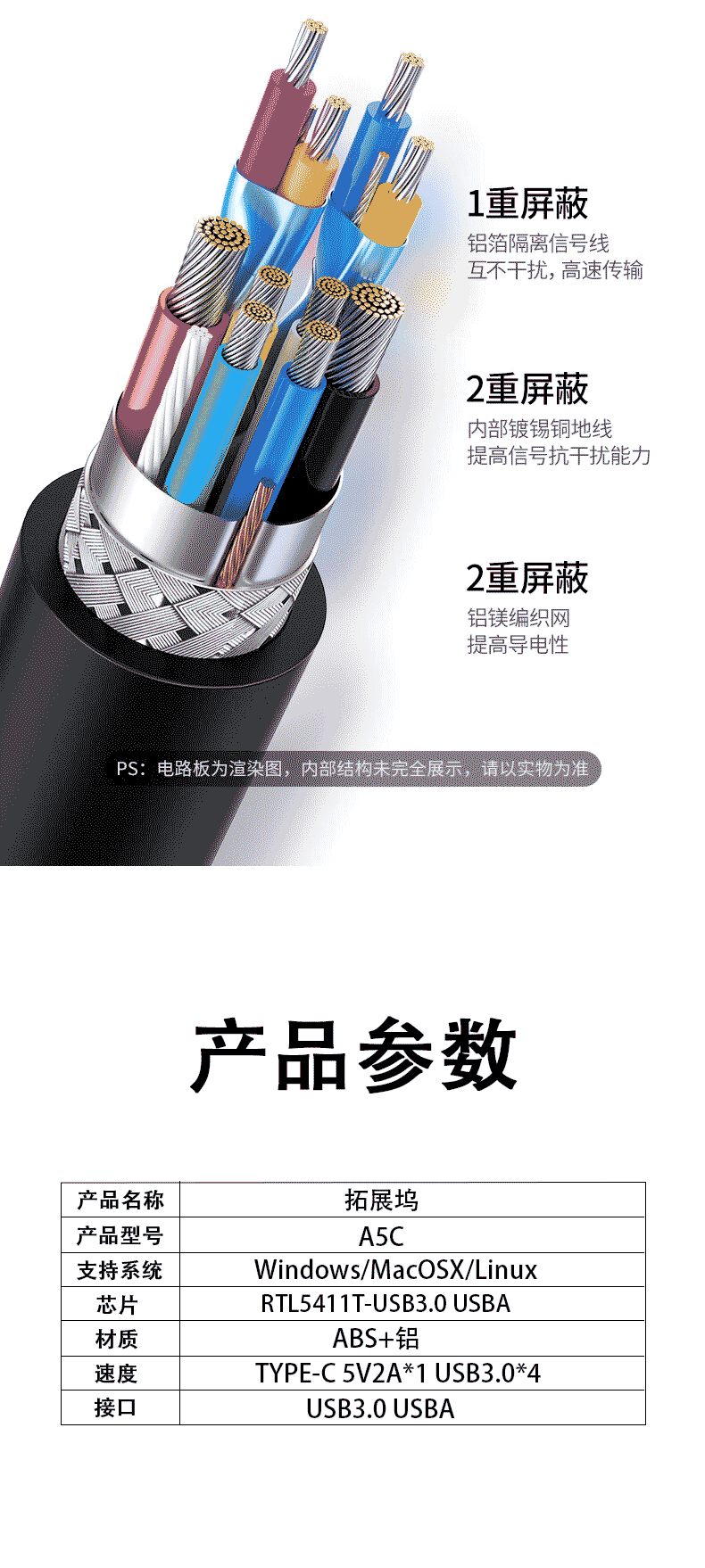 지원 OEM 맞춤형 USB3.0 4-in-1 분배기 4포트 확장 도크 노트북 멀티 인터페이스 변환기스토어 가기