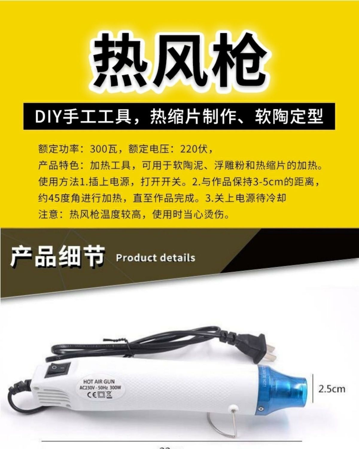 뜨거운 공기 총 소형 220V 국가 표준 플러그 부드러운 점토 diy 열 수축 총 볼록한 분말 양각 분말 열 수축 시트 도구 Nan Shuo스토어 가기