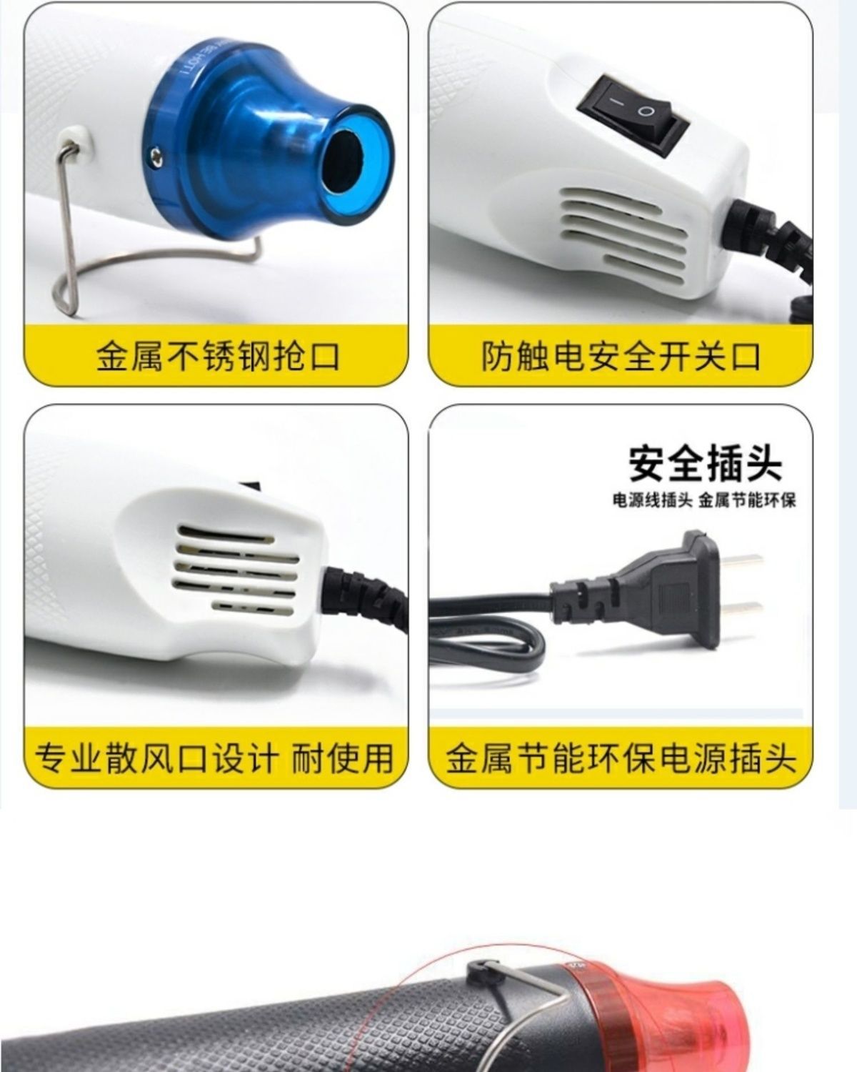 뜨거운 공기 총 소형 220V 국가 표준 플러그 부드러운 점토 diy 열 수축 총 볼록한 분말 양각 분말 열 수축 시트 도구 Nan Shuo