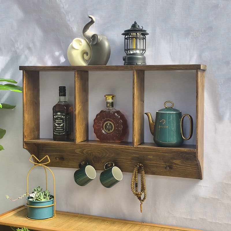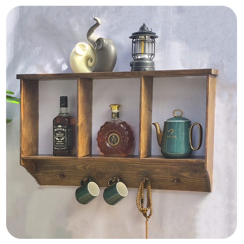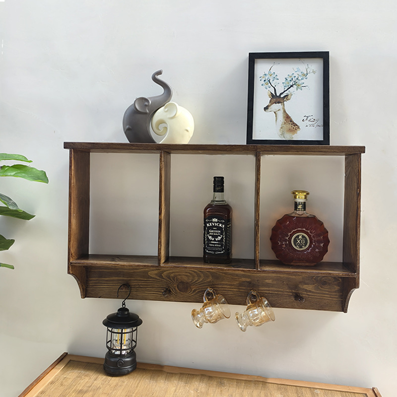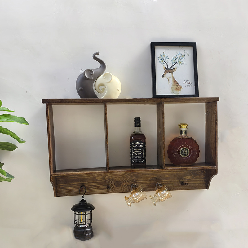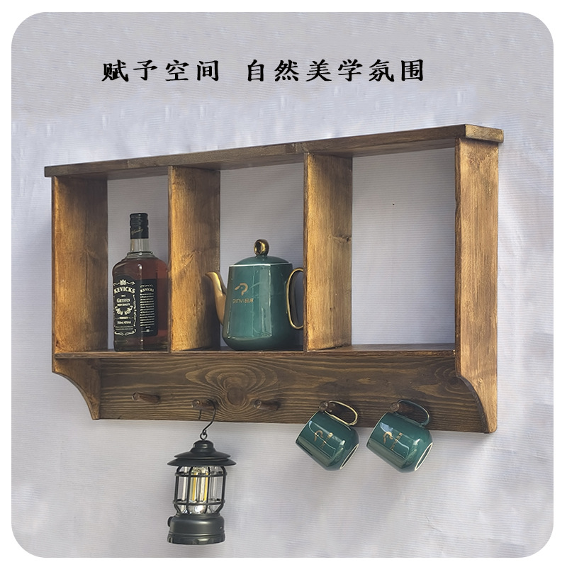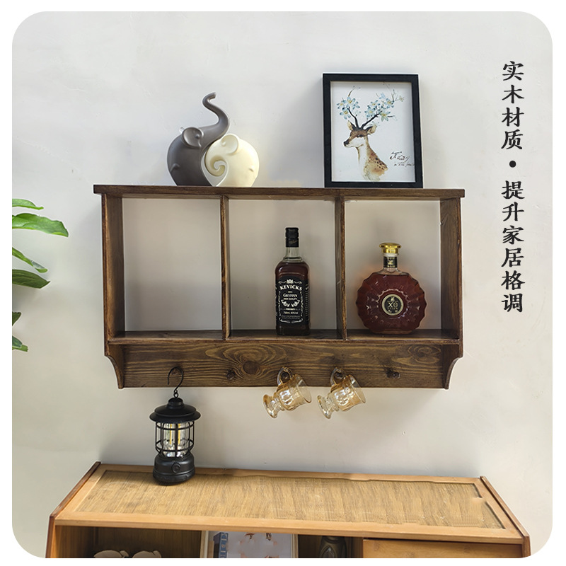 단단한 나무 벽 선반 복고풍 스타일 벽걸이 형 선반 거실 입구 와인 랙 크리 에이 티브 단단한 나무 선반스토어 가기