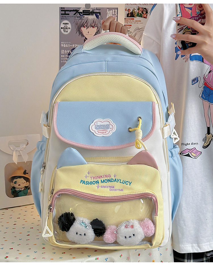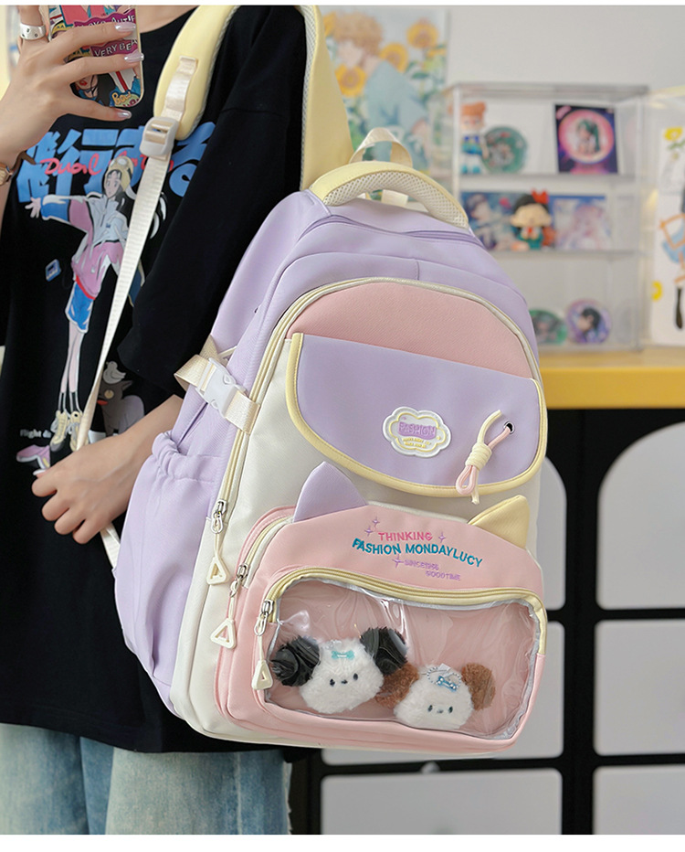 중학생을 위한 귀여운 고양이 나일론 대용량 책가방, 여고생을 위한 배낭, 여아용 통통한 가방, 아기 가방, 대학 스타일스토어 가기
