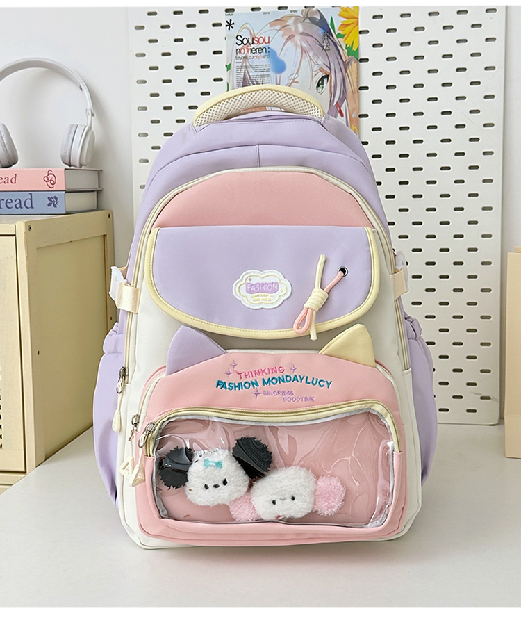 중학생을 위한 귀여운 고양이 나일론 대용량 책가방, 여고생을 위한 배낭, 여아용 통통한 가방, 아기 가방, 대학 스타일