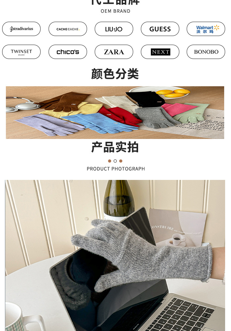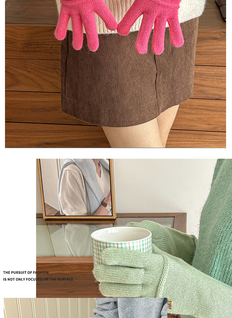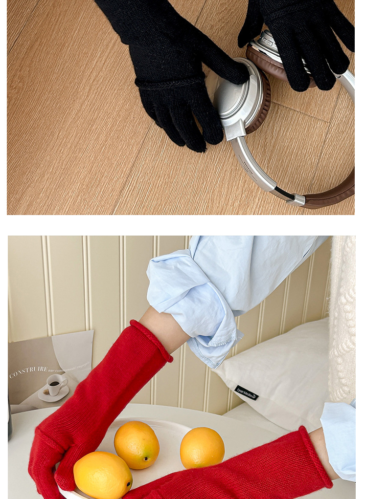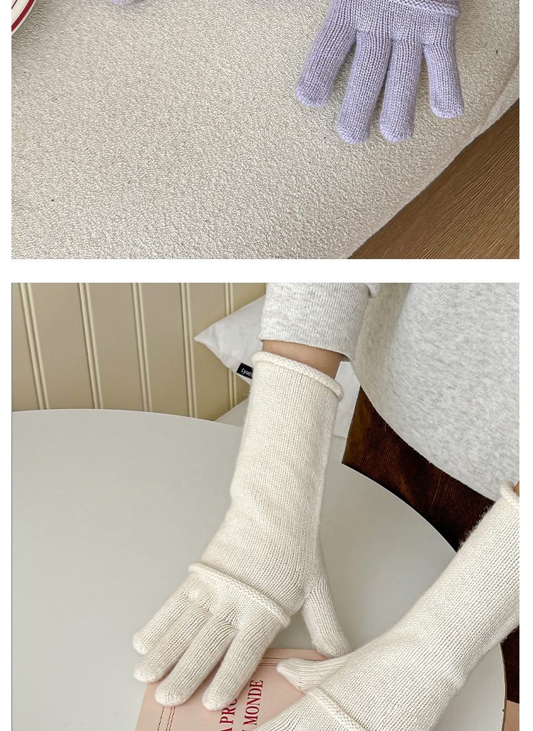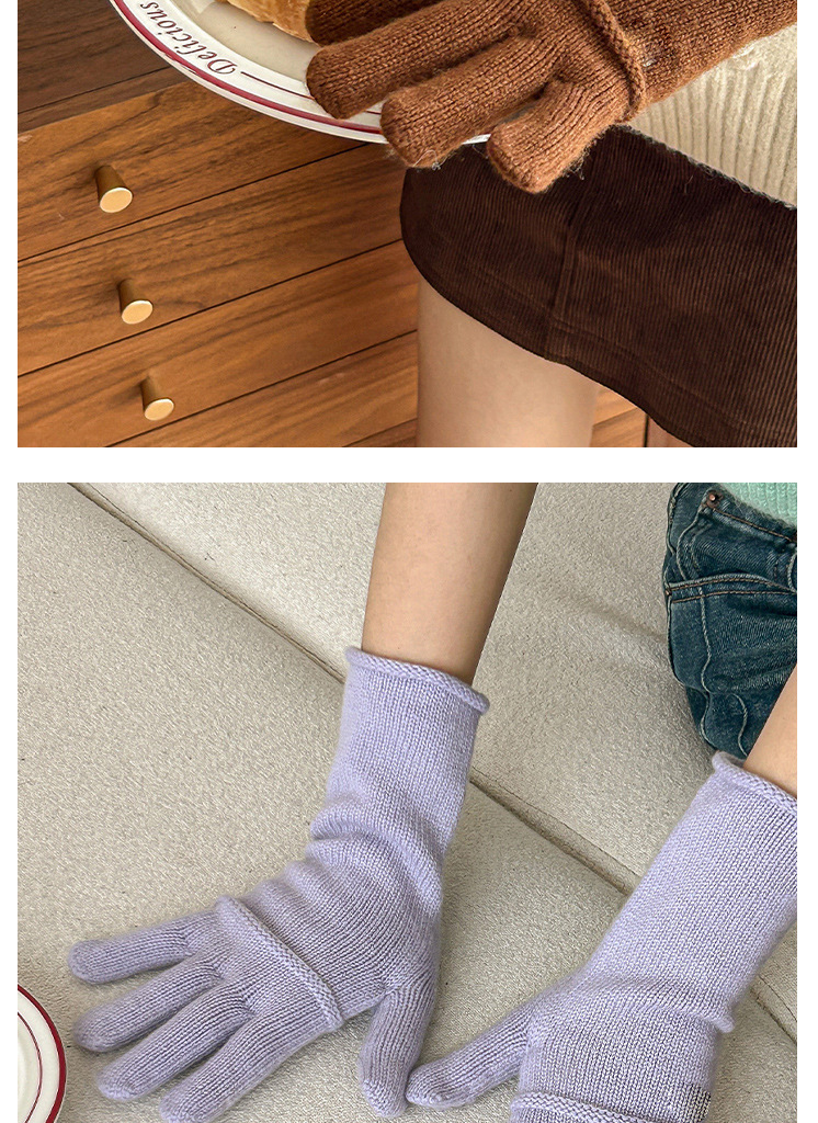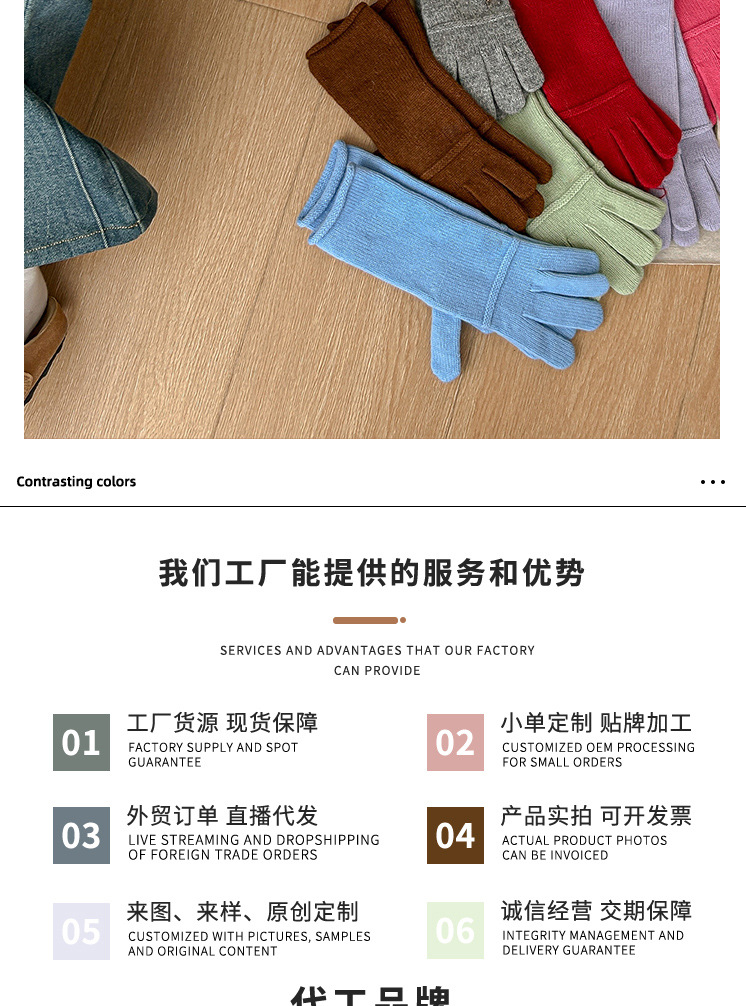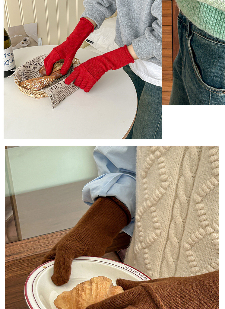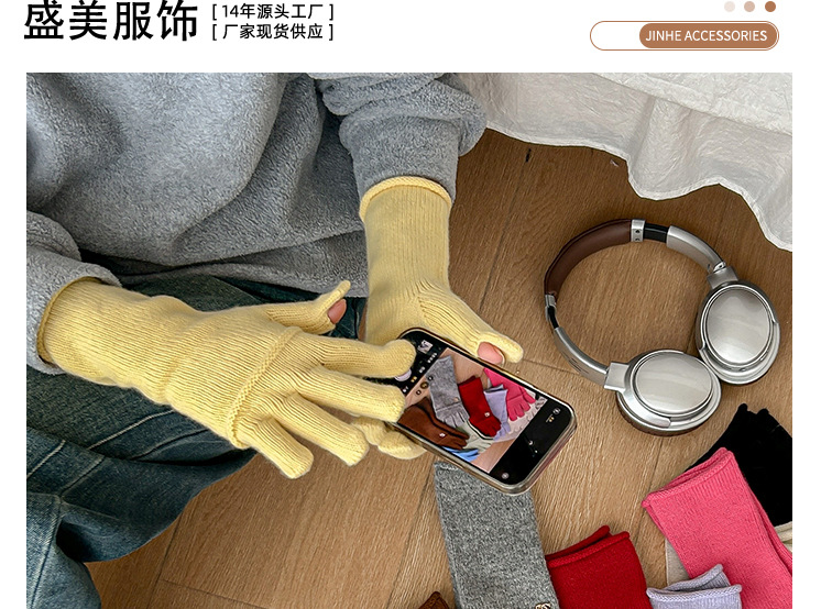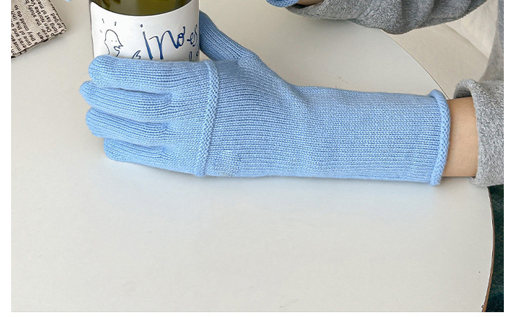 겨울철 여성을 위한 한국식 긴 단색 울 니트 장갑, 따뜻한 단색 핑거리스 터치 스크린 다섯 손가락 장갑 제조업체스토어 가기