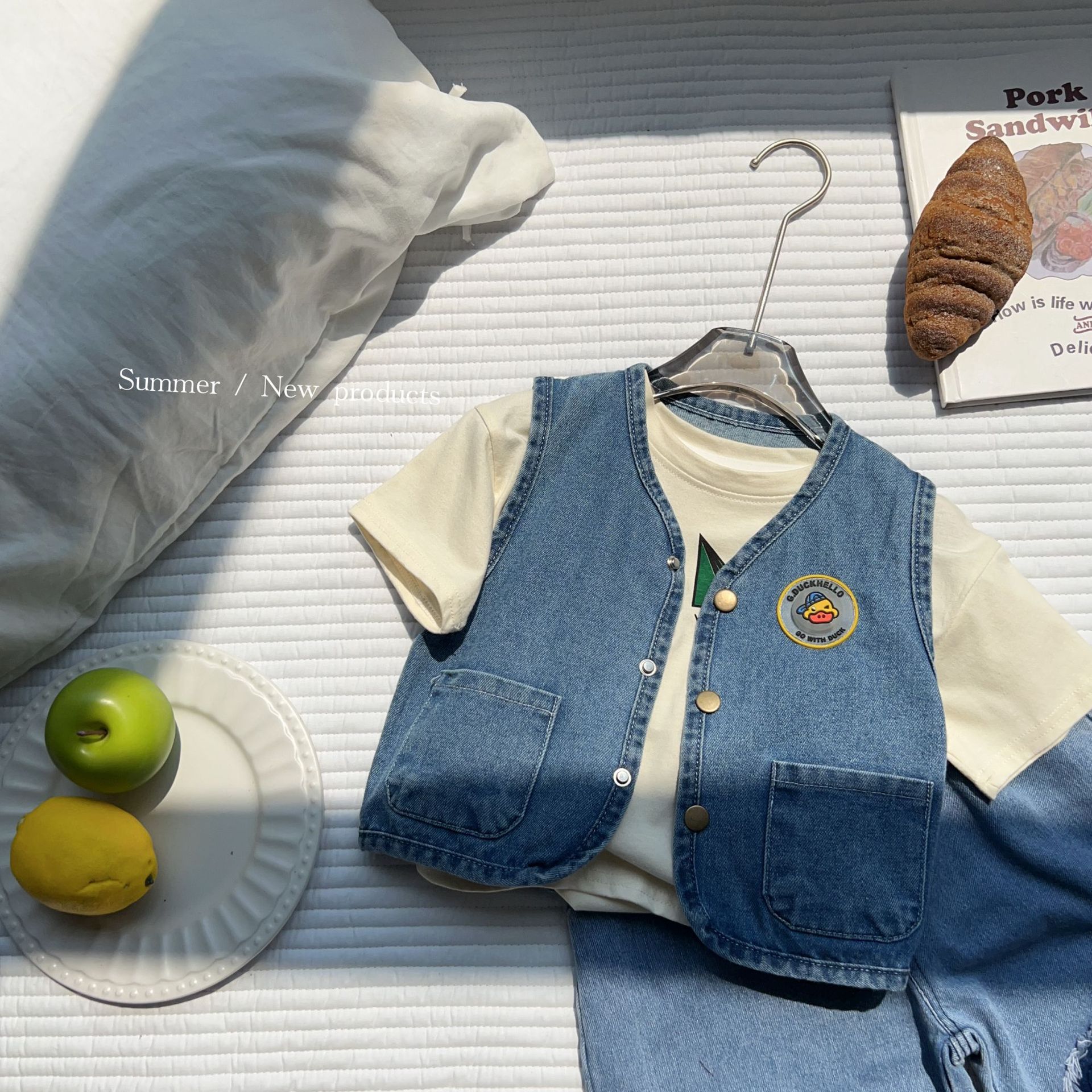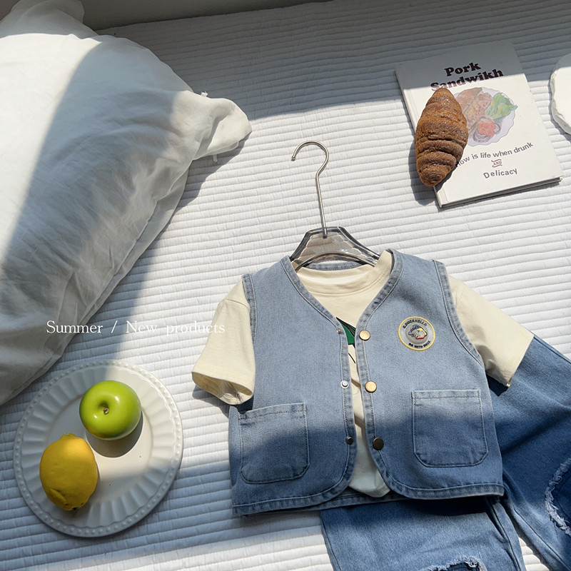 어린이 조끼 2025 소년과 소녀 여름 새 스타일 3152 한국어 버전 작은 오리 조명 데님 조끼스토어 가기