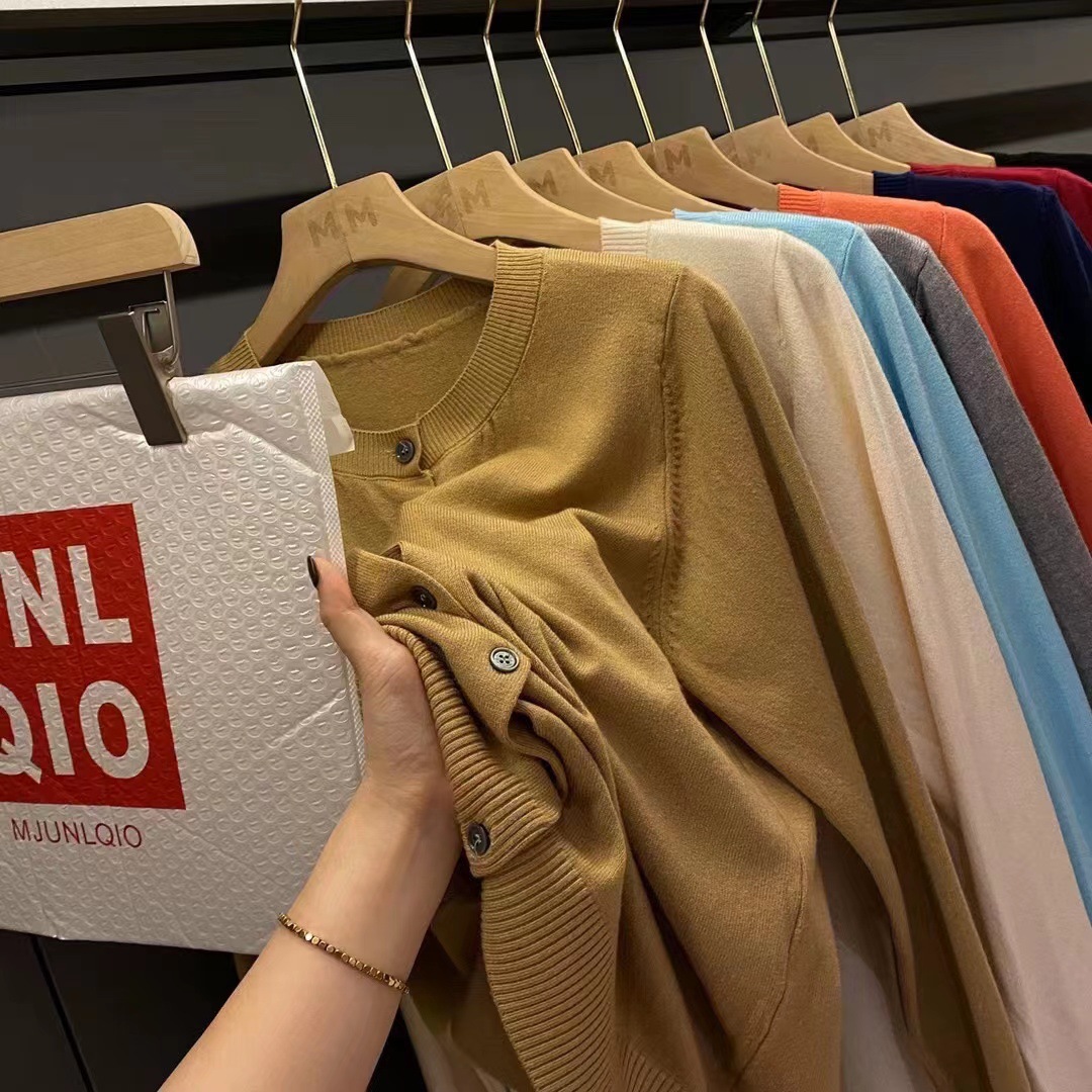 2025 신상 YouUjia 같은 스타일의 여성용 작은 카디건 스웨터, 짧은 긴팔 루즈한 스웨터, 정품, 심플하고 다재다능함스토어 가기