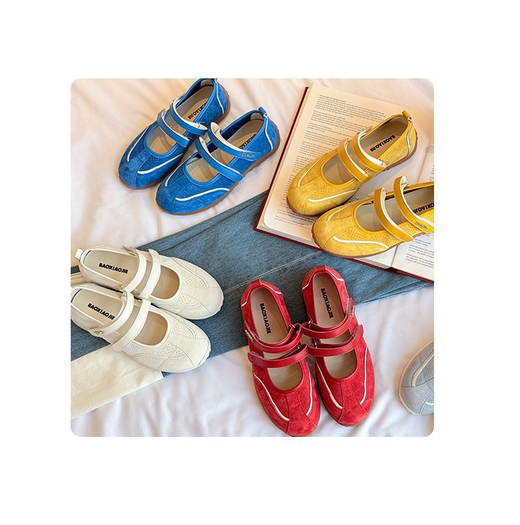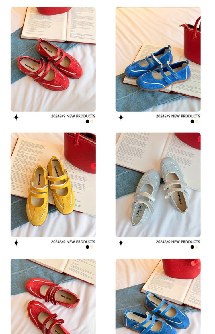 [로판센] 2025 뉴 레트로 레드 메리제인 슈즈 플랫 슈즈, 발레 트렌디한 펌프스 내부 키높이스토어 가기