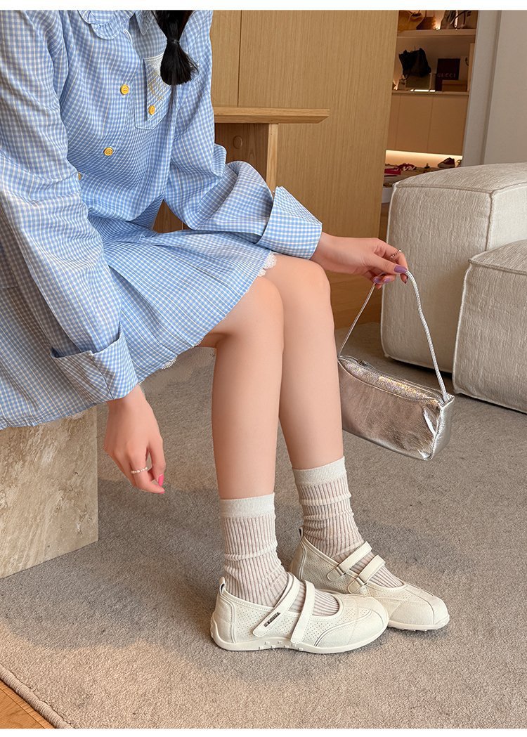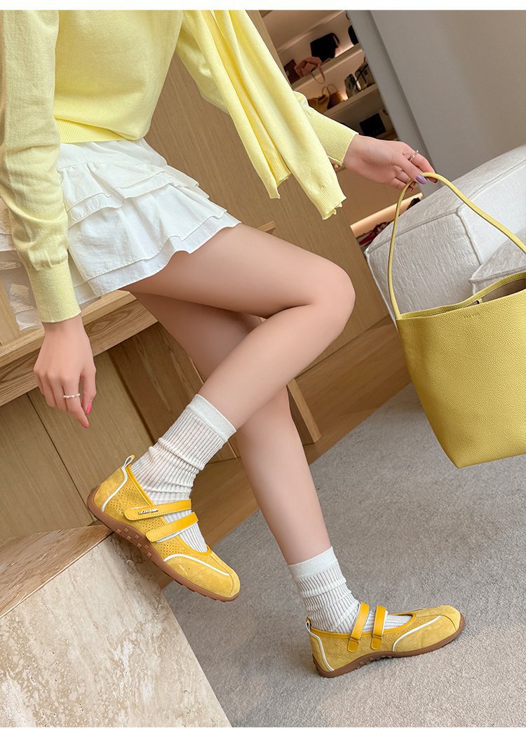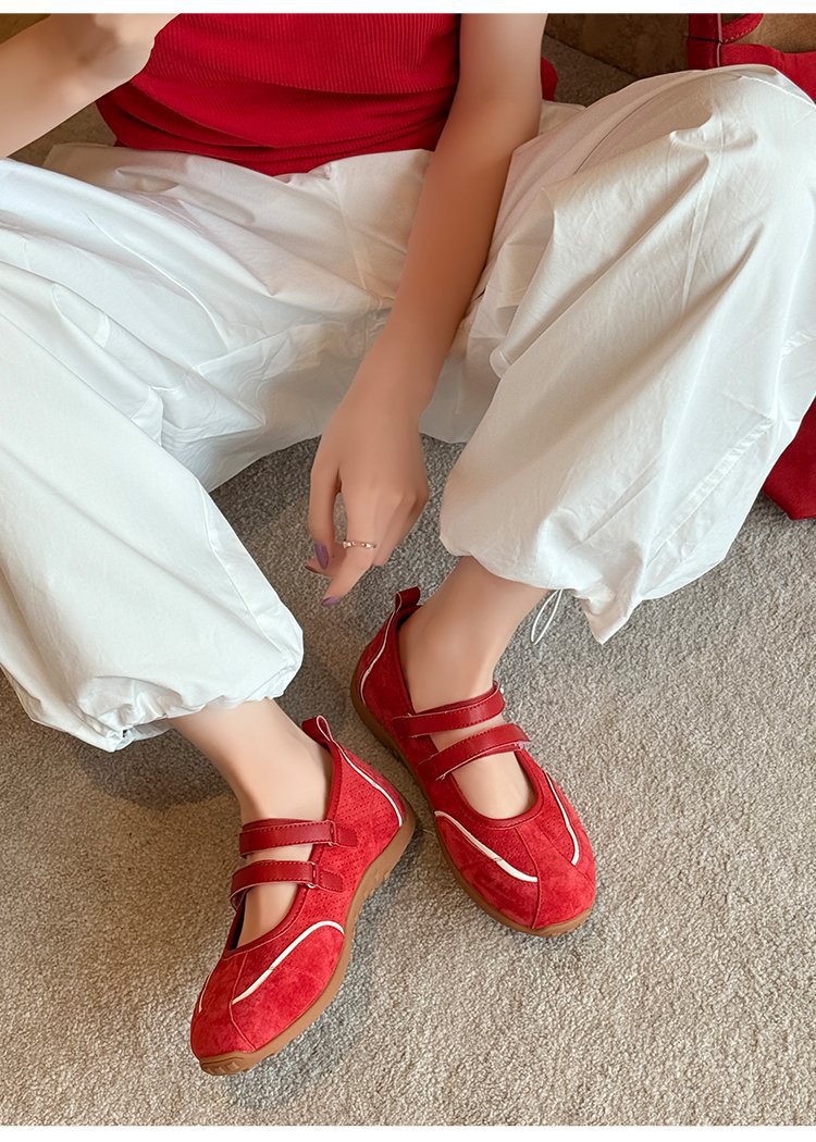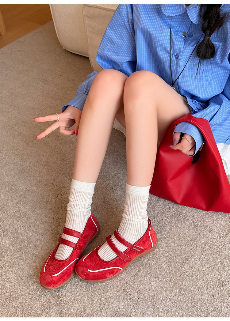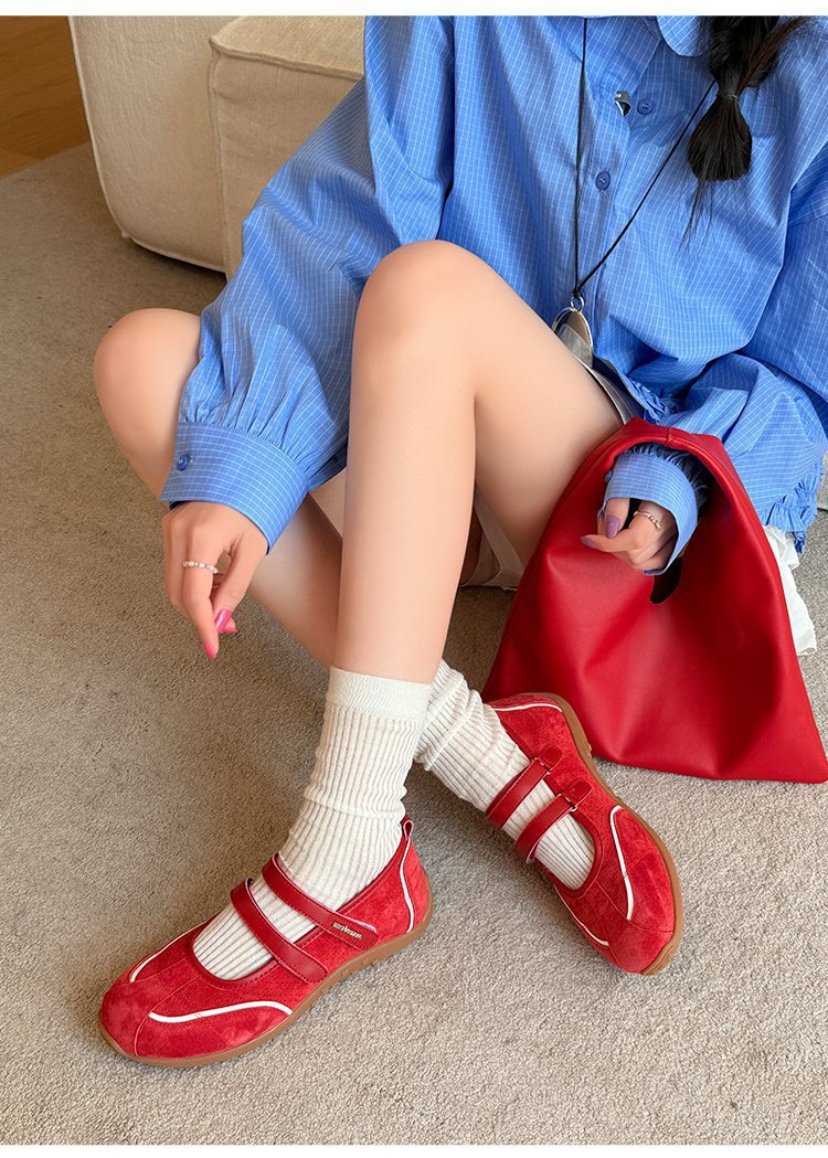 [로판센] 2025 뉴 레트로 레드 메리제인 슈즈 플랫 슈즈, 발레 트렌디한 펌프스 내부 키높이