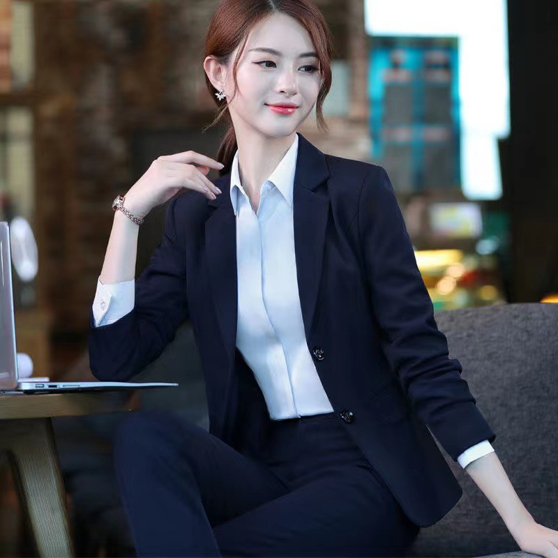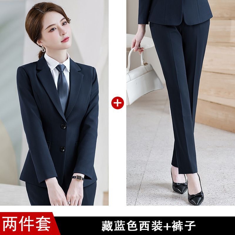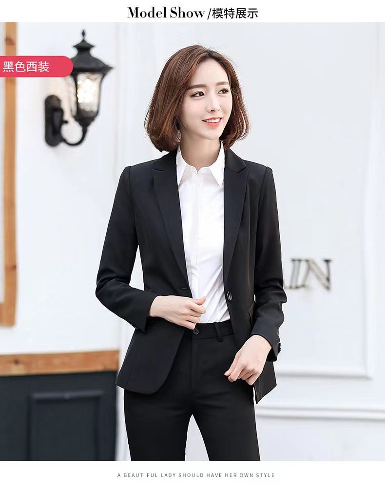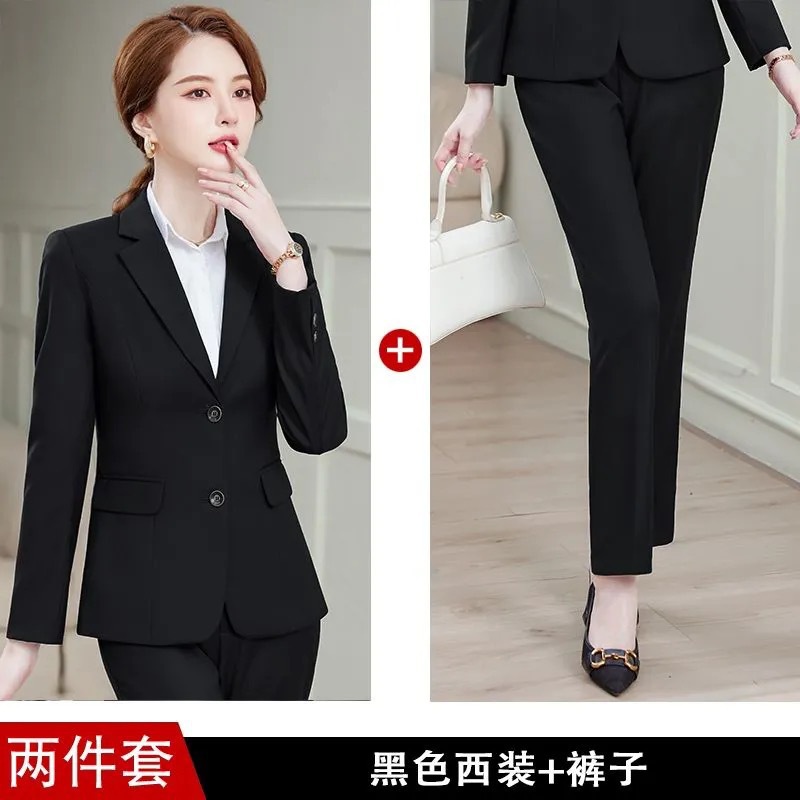 여성 정장, 우아한 스타일의 수트, 고급스러운 여성용 검정색 더블 버튼 정장, 워크웨어 재킷과 바지스토어 가기