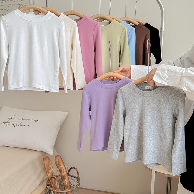 [부드럽고 편안한] 아동용 모달 바닥 셔츠 소년 긴팔 티셔츠 베이비 탑 소녀 티셔츠 봄, 가을