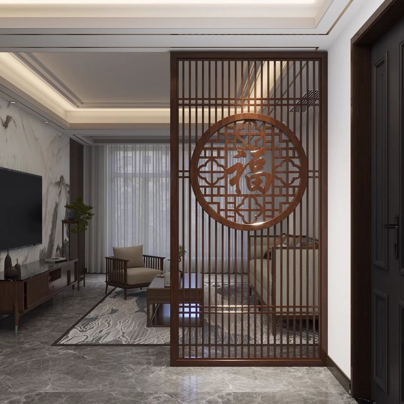 2025년 새로운 스타일의 축복 문, 거실 입구, 새로운 중국 스타일의 전체 단단한 나무 중공 그릴 차단 파티션스토어 가기