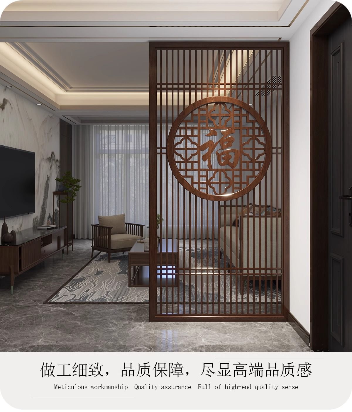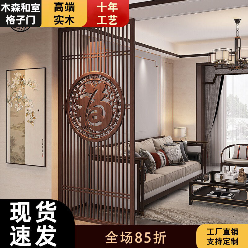 2025년 새로운 스타일의 축복 문, 거실 입구, 새로운 중국 스타일의 전체 단단한 나무 중공 그릴 차단 파티션
