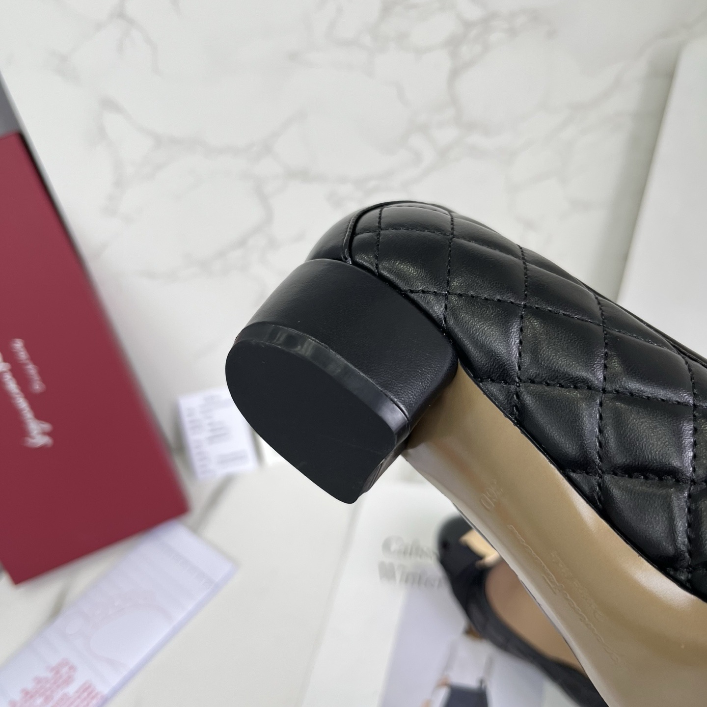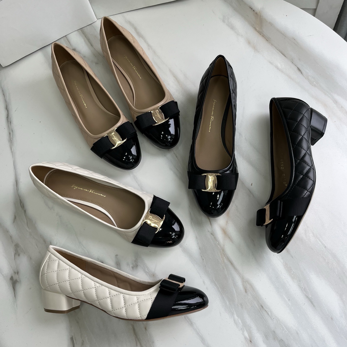 SF 교체용 다용도 클래식 패셔너블한 펌프스 라운드 토 보우 소가죽 마름모 미드힐 여성용 두꺼운 힐 슈즈스토어 가기