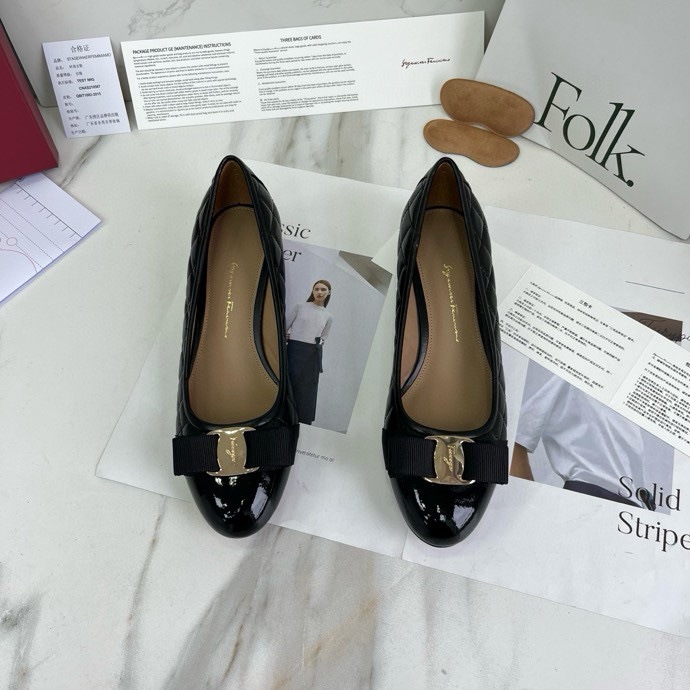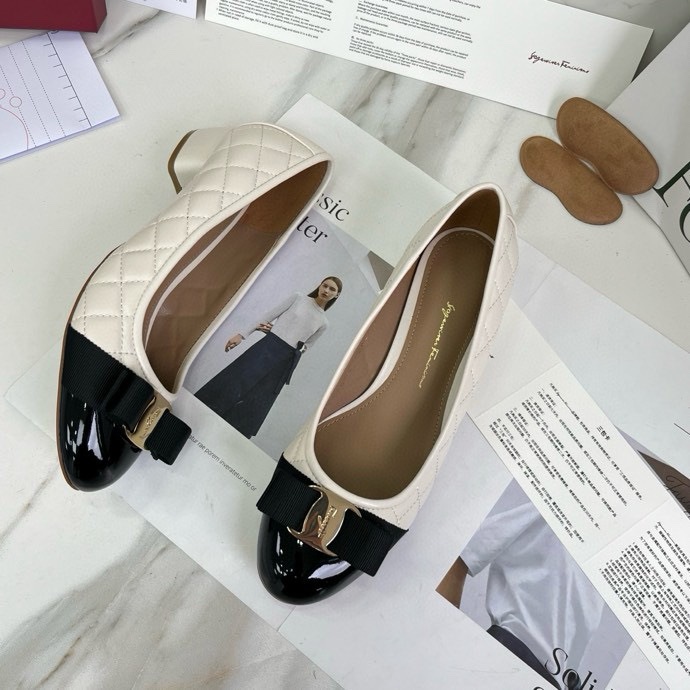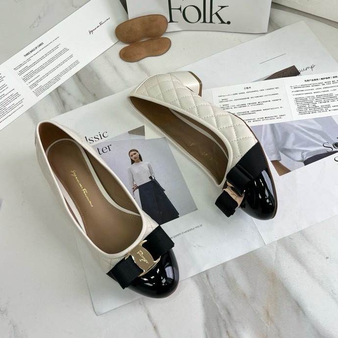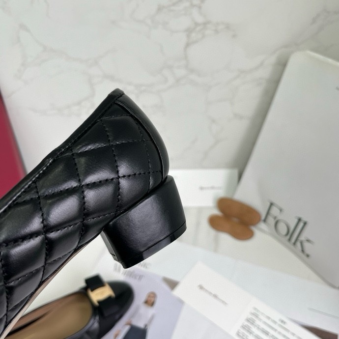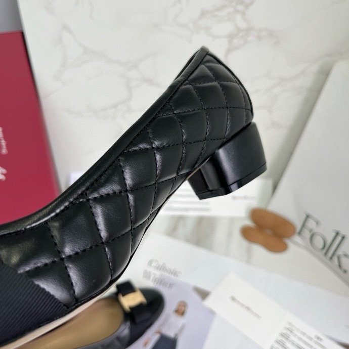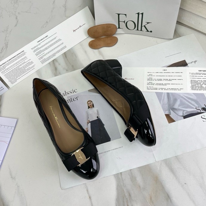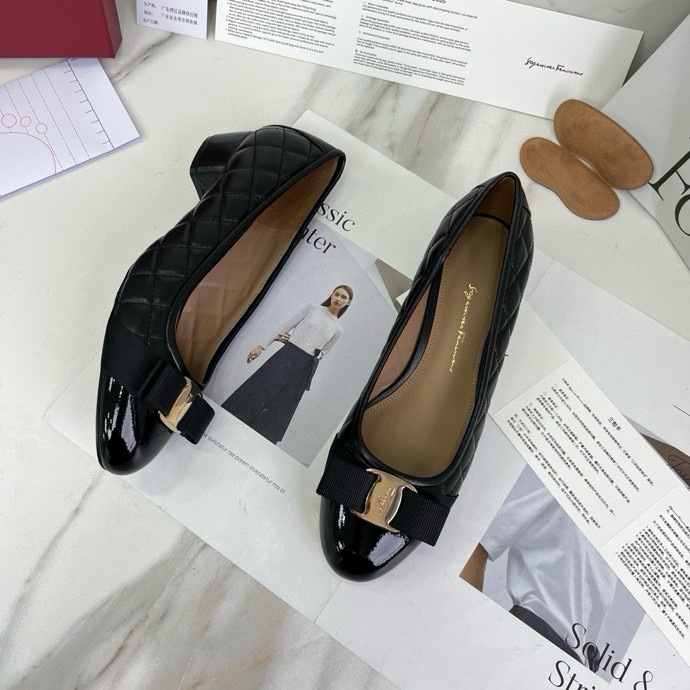 SF 교체용 다용도 클래식 패셔너블한 펌프스 라운드 토 보우 소가죽 마름모 미드힐 여성용 두꺼운 힐 슈즈