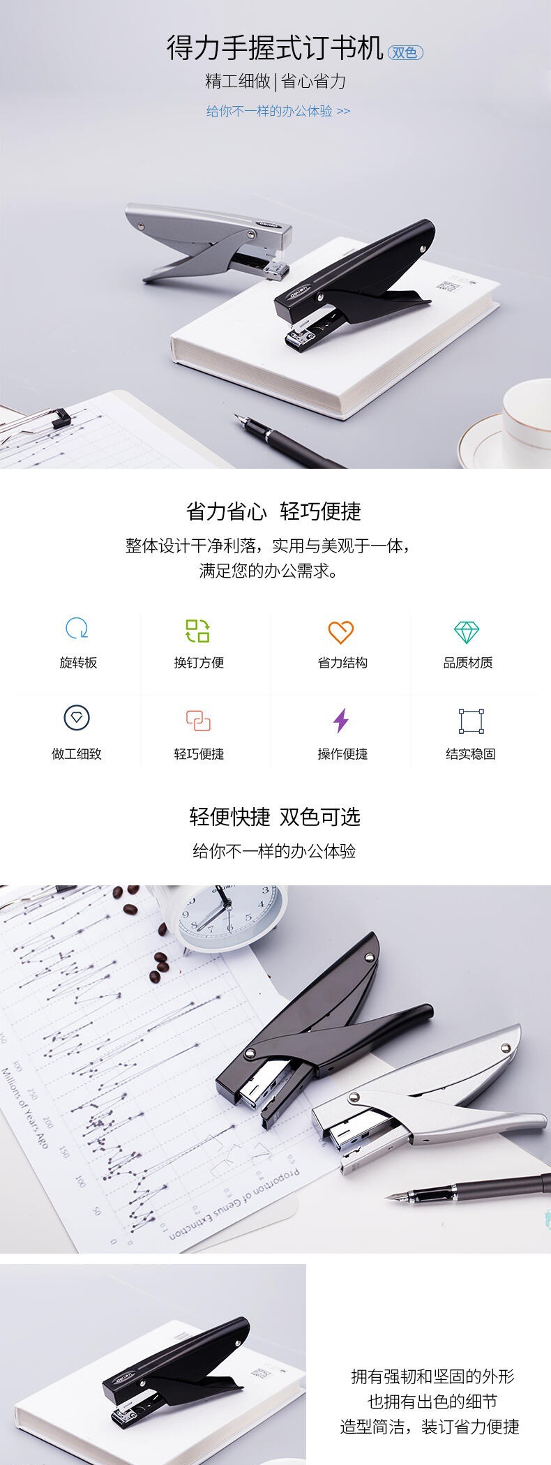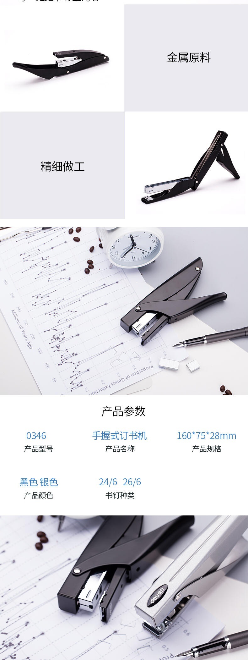 델리 0346 금속 핸드헬드 중형 스테이플러 회전 펜치형 노동 절약형 스테이플러 12호 표준 제본기