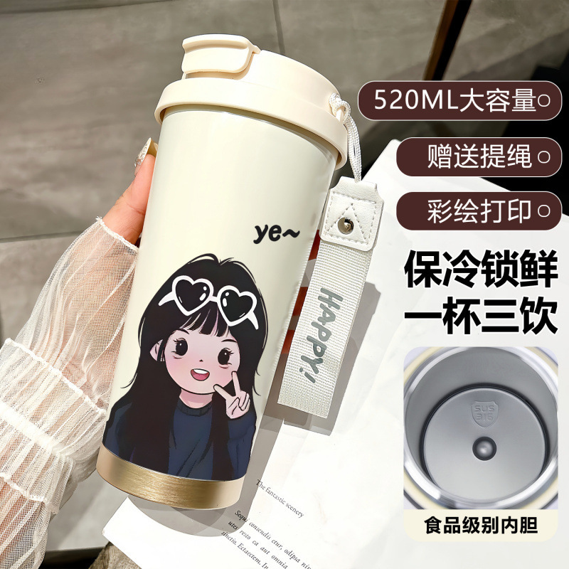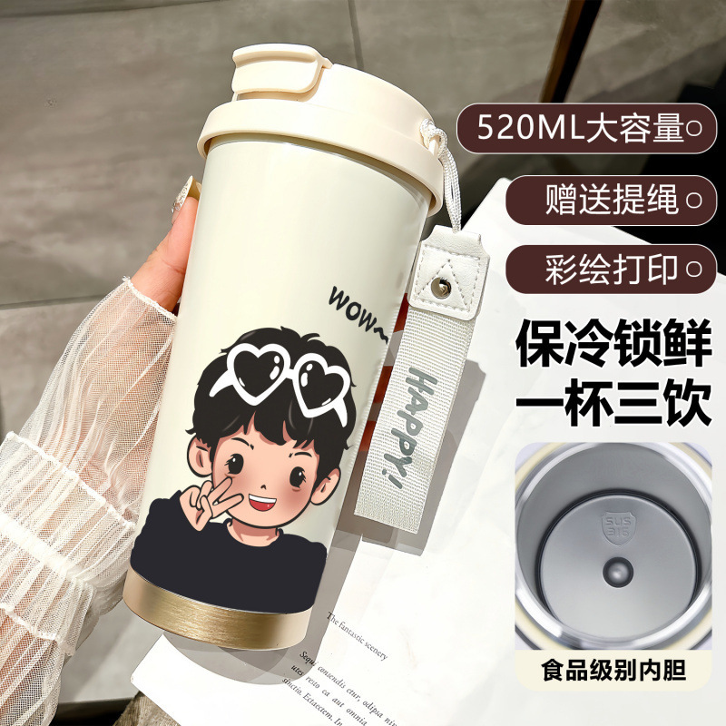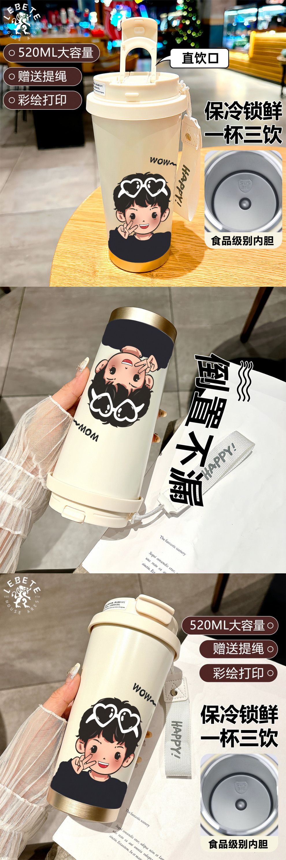 LEBETE Bieye Boy ins 보온병 컵 휴대용 대용량 커피 컵 자동차 워터 컵 남성용 및 여성용 밀짚 컵스토어 가기