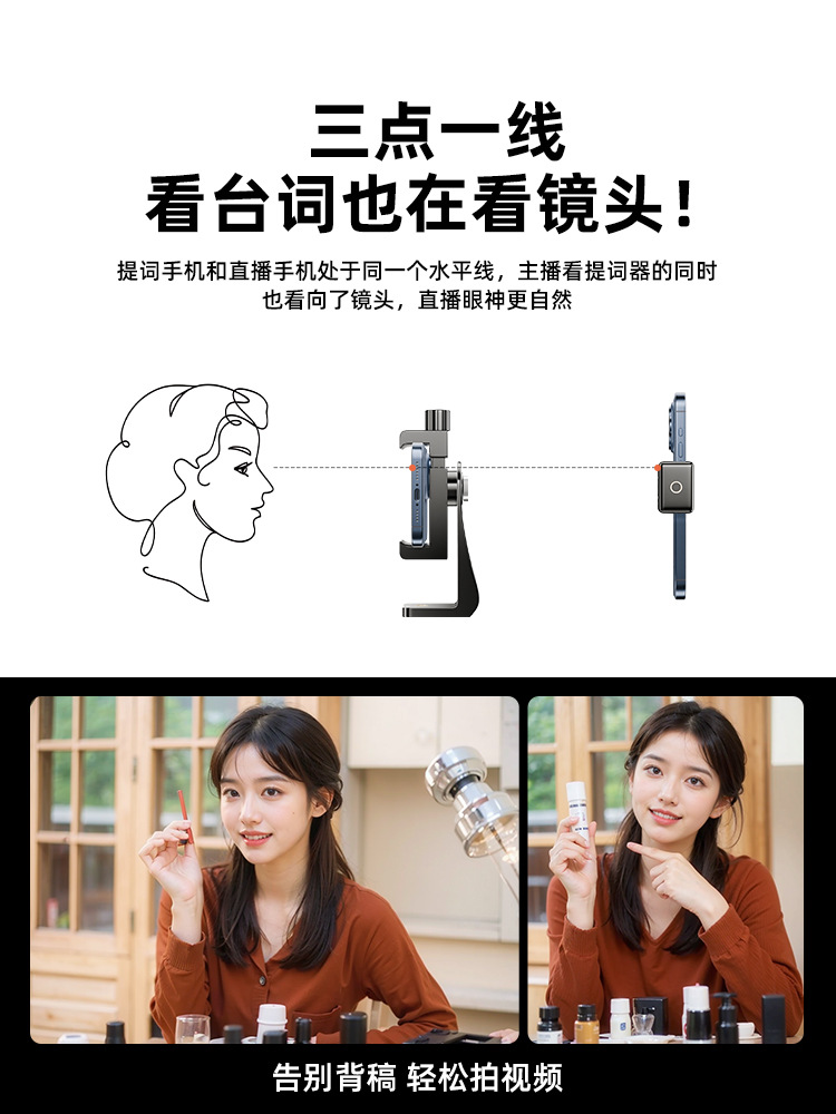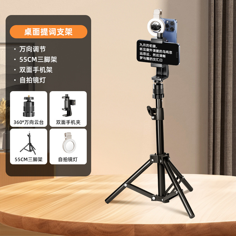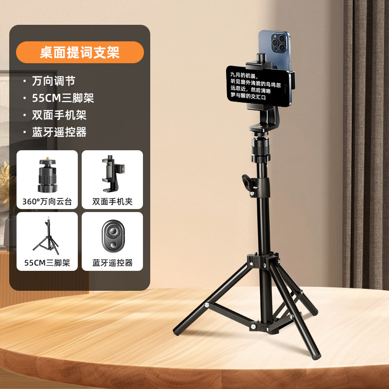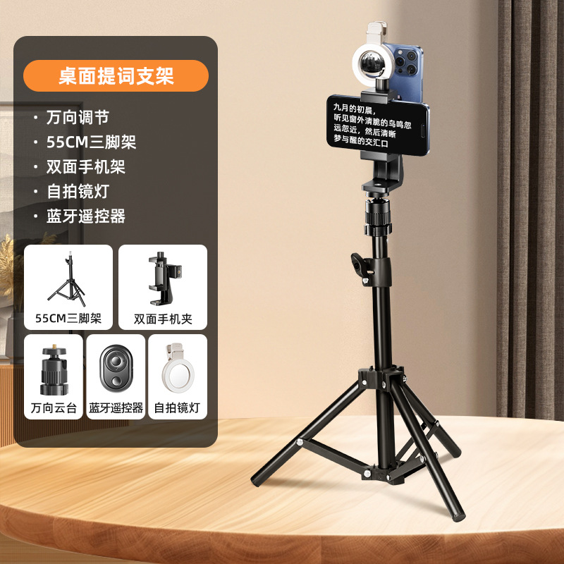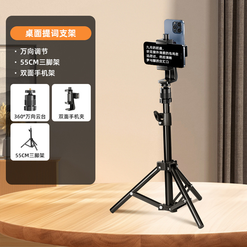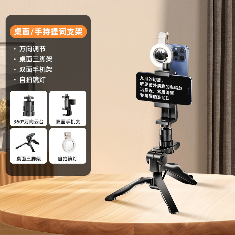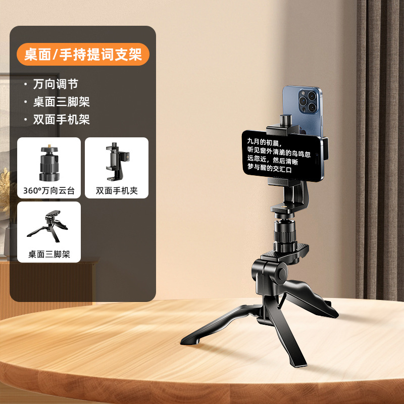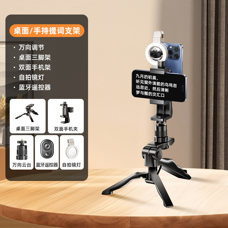 휴대폰 텔레프롬프터 스탠드 데스크탑 삼각대 라이브 방송 전용 양면 휴대폰 클립 마이크 방송 촬영 휴대용 핸드헬드 녹화