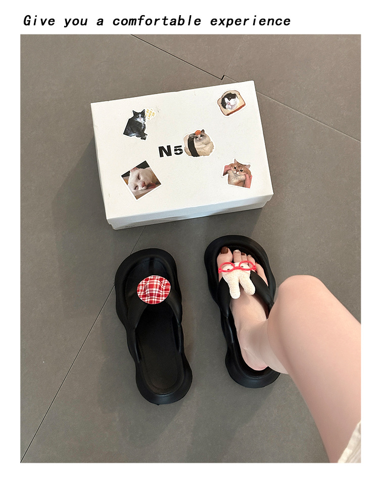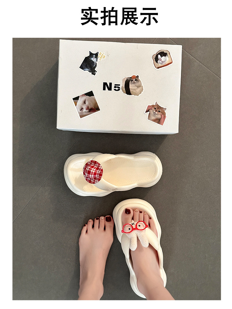 여성을위한 세련된 두꺼운 밑창 귀여운 미피 토끼 만화 플립 플롭 2025 여름 새로운 겉옷 다목적 비치 샌들스토어 가기