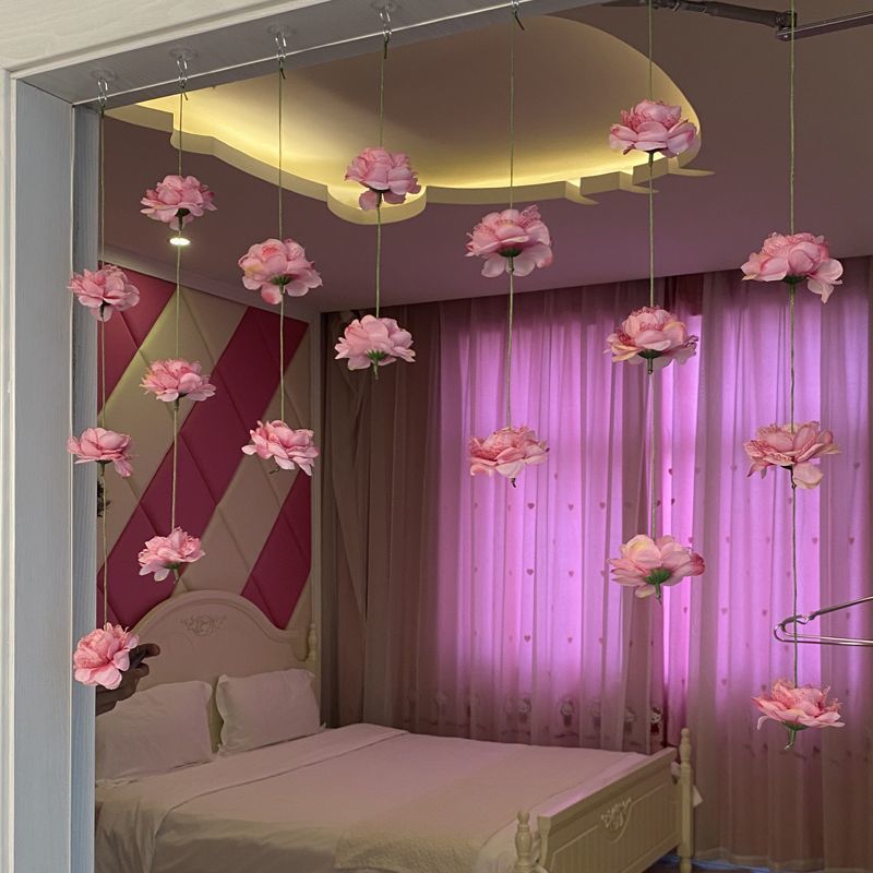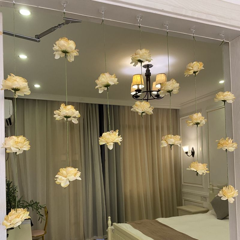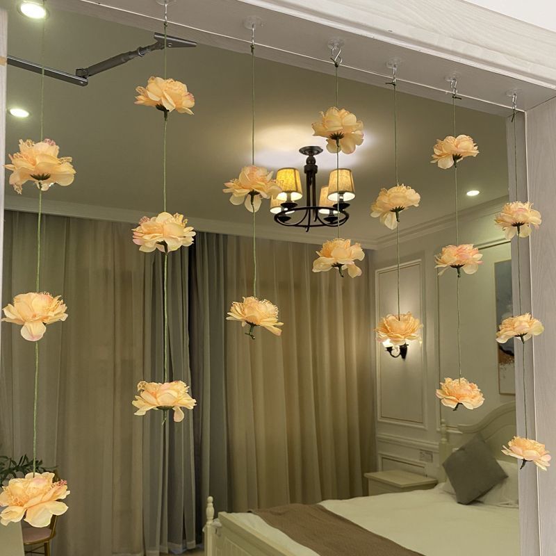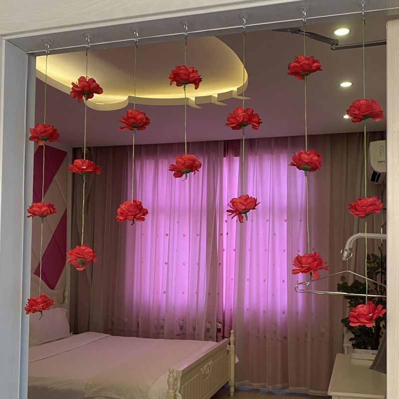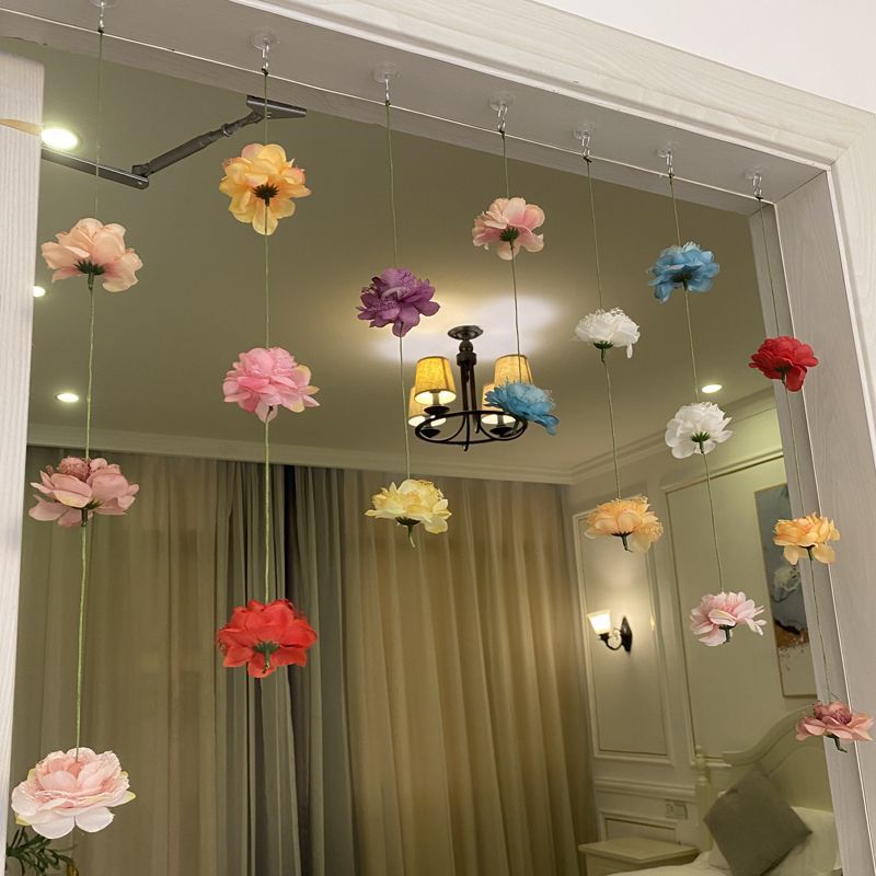레이스 장미 홈 도어 커튼 로맨틱 침실 거실 크리 에이 티브 펜던트 펜던트 꽃 동백 펀치없는 직접 판매