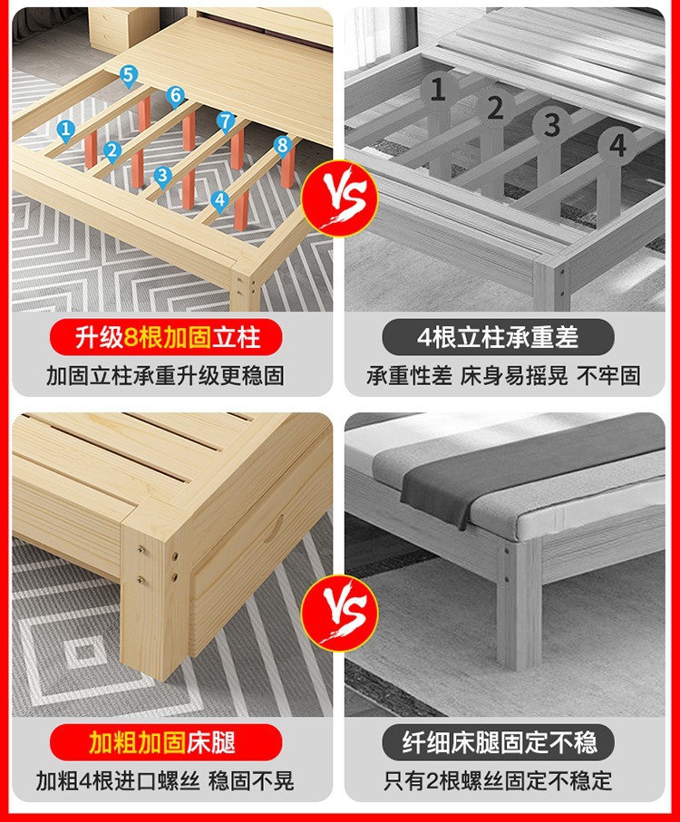 간단한 싱글 침대 프레임 원목 침대 1.5m 소나무 침대 경제적인 더블 침대 현대적인 간단한 임대 침대스토어 가기