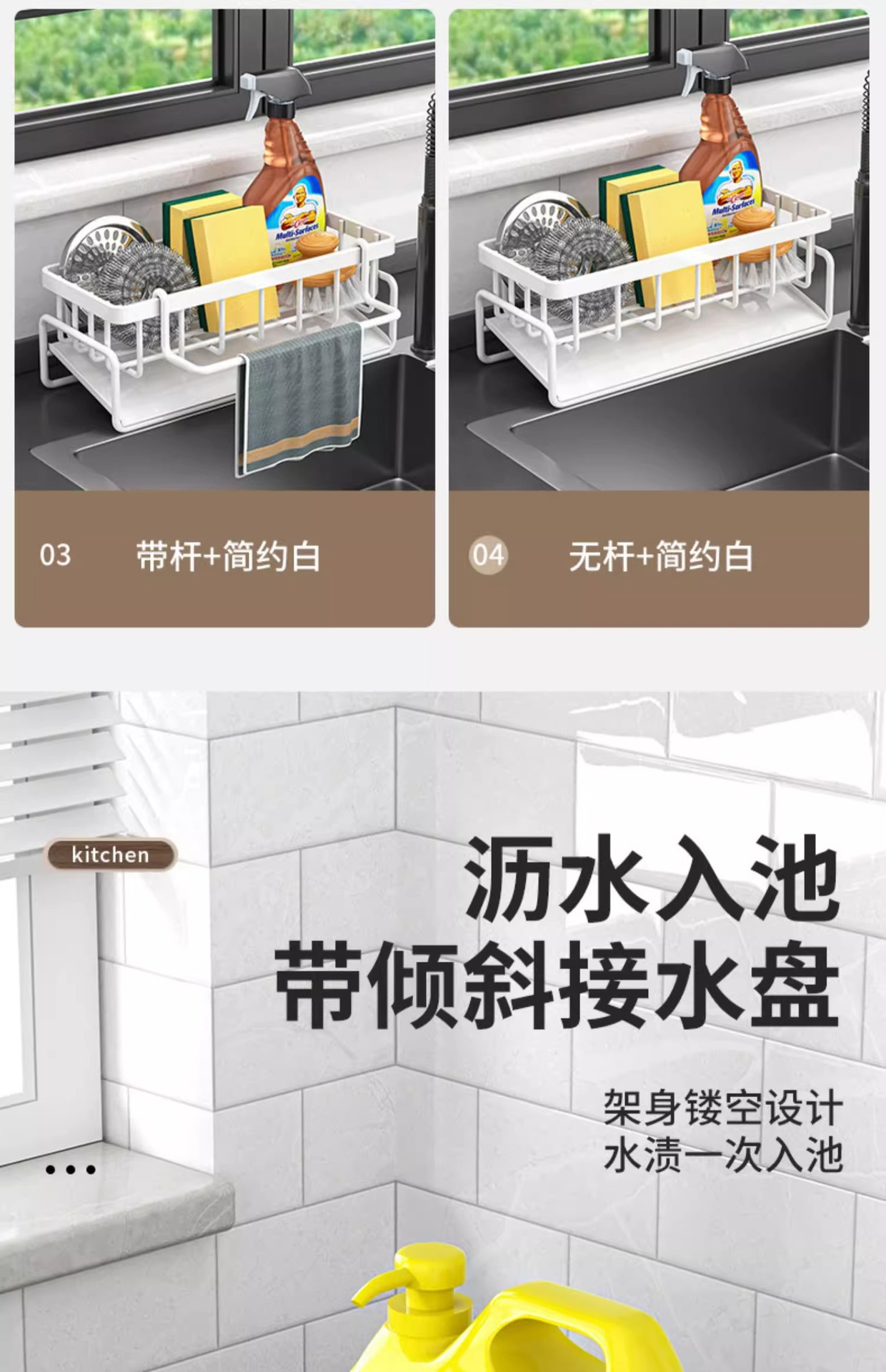 주방 수도꼭지 보관함 식기 세척 싱크대 선반 벽걸이형 배수 바구니 와이어 볼 스폰지 보관함