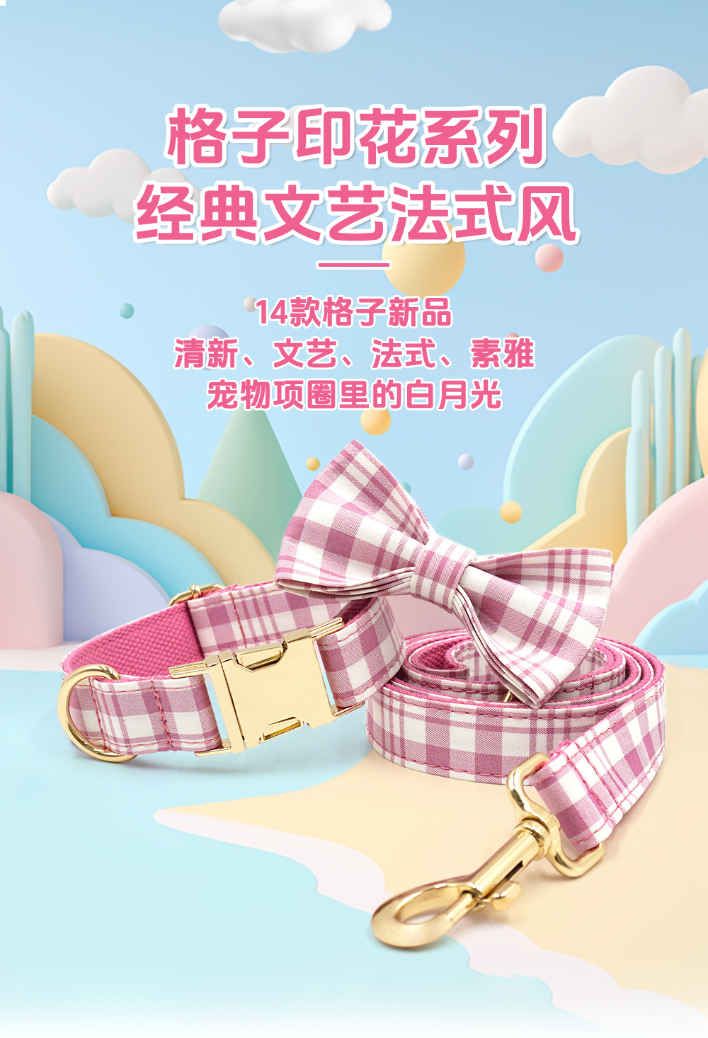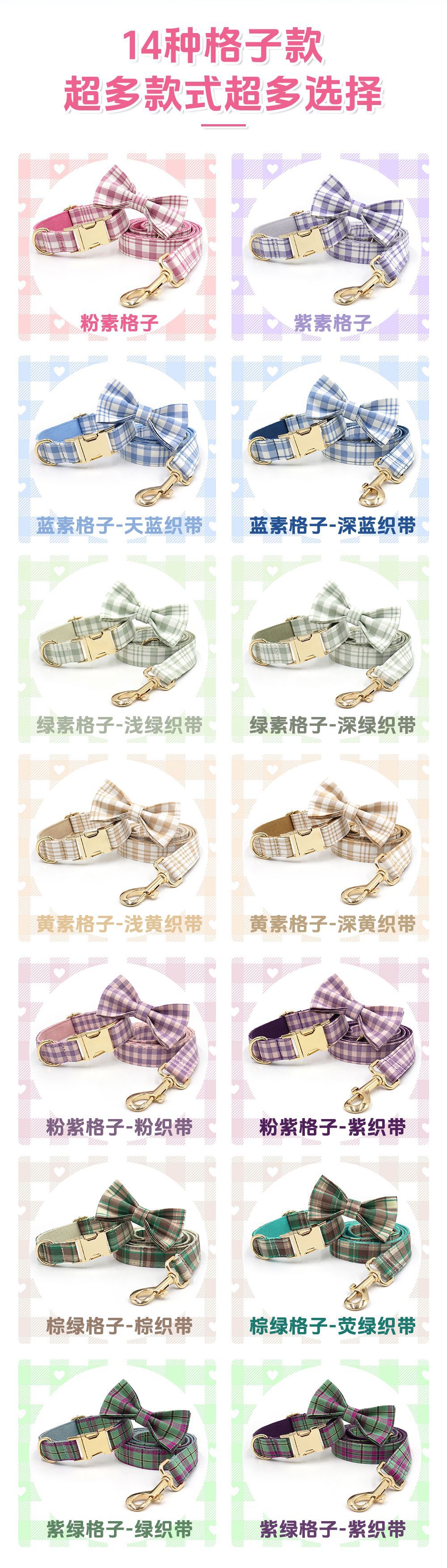 格子宠物牵引套装 跨境狗狗牵引绳宠物项圈 狗狗项圈牵引绳狗绳