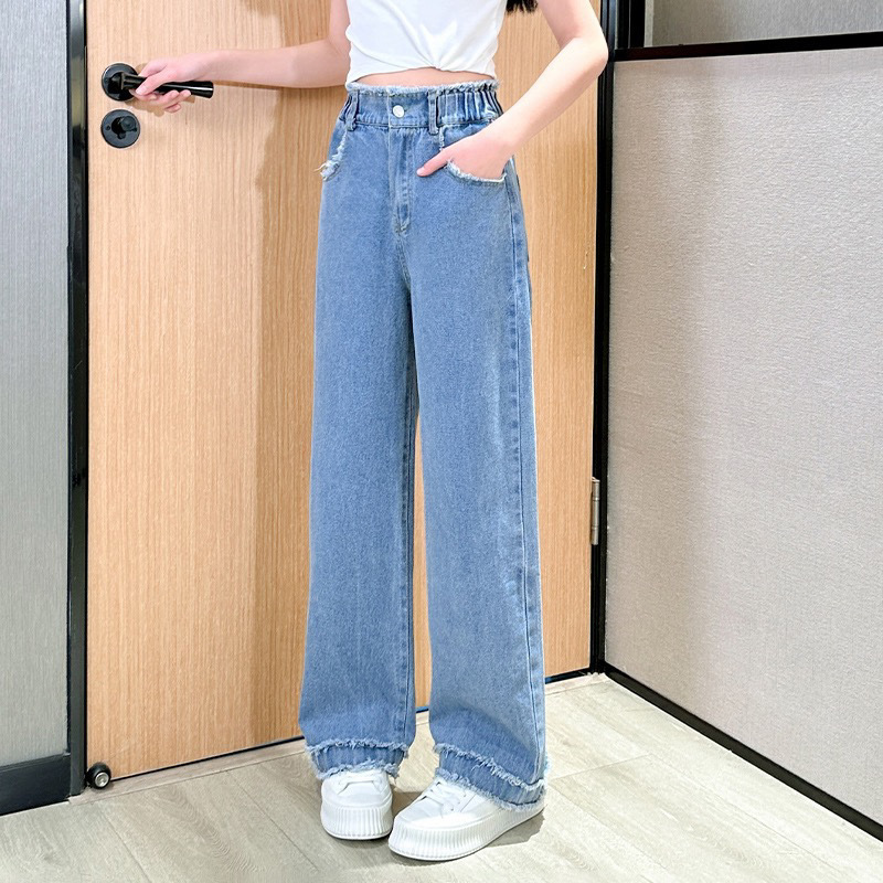 여름 아동 바지 얇은 스트레이트 와이드 레그 팬츠 여아 청바지 루즈 캐주얼 큰 아동 여아 여름 바지스토어 가기