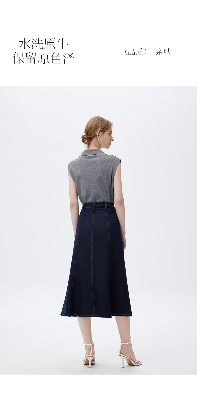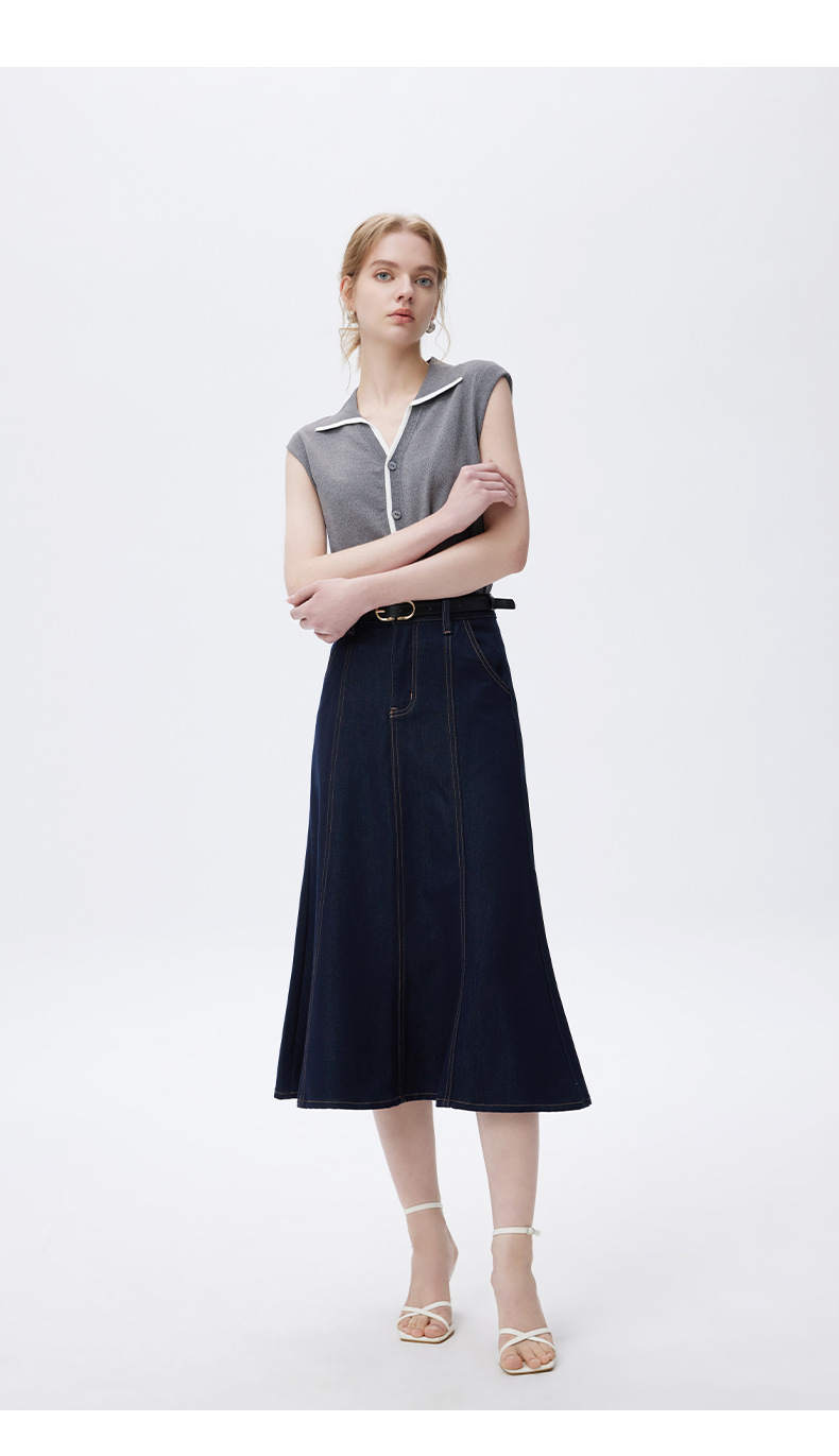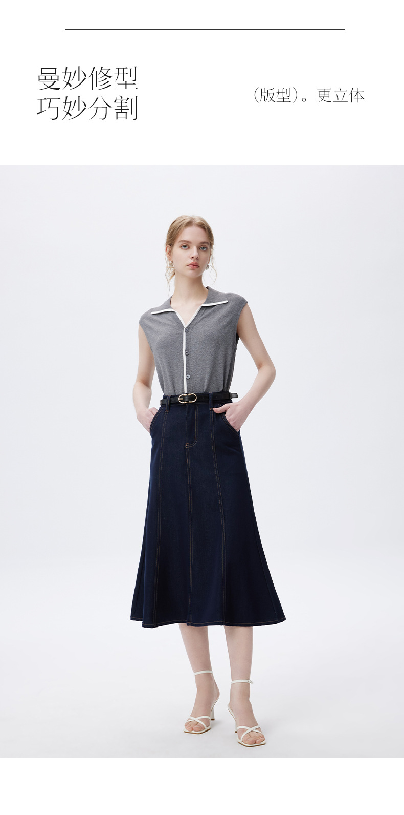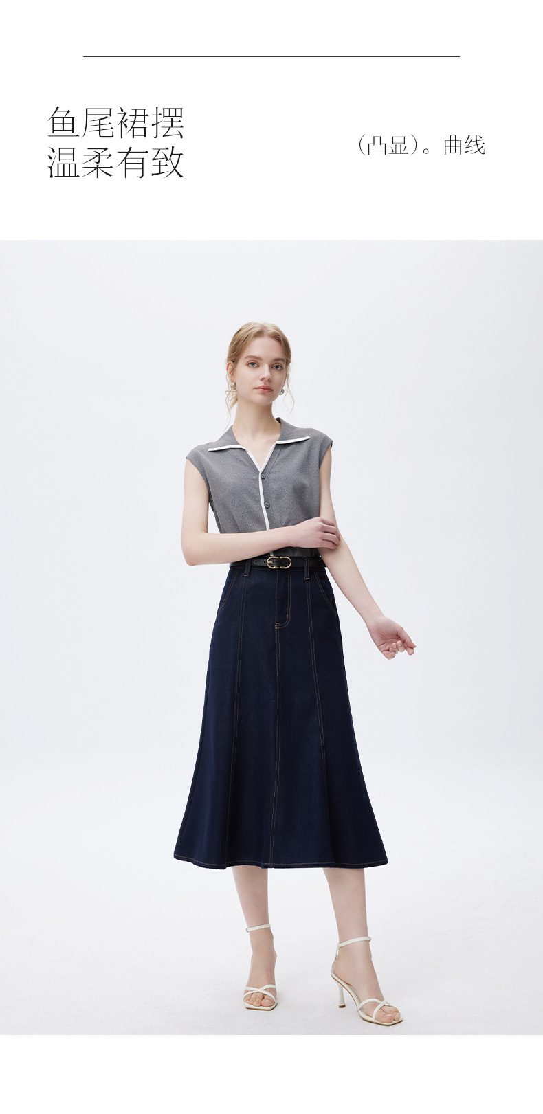 2025 신상 데님 미드 스커트 얇은 주름 방지 머서라이즈 오리지널 소가죽 변색되지 않는 피쉬테일 스커트 하이 웨이스트 데님 스커트