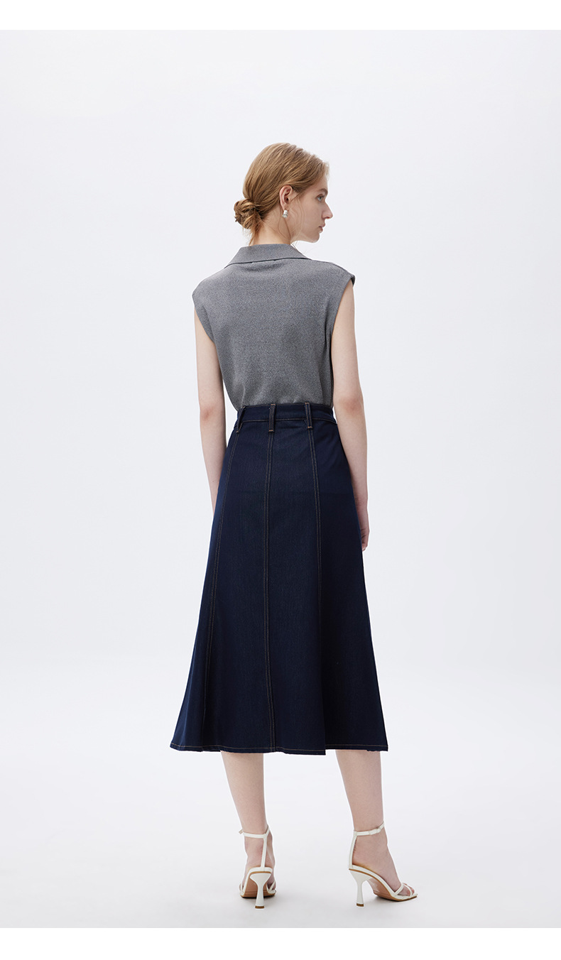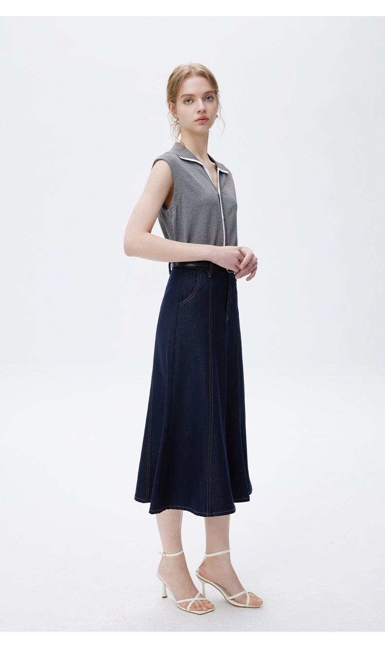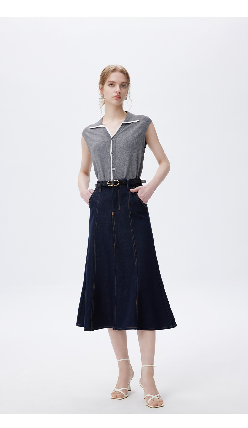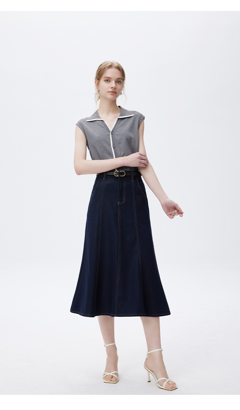 2025 신상 데님 미드 스커트 얇은 주름 방지 머서라이즈 오리지널 소가죽 변색되지 않는 피쉬테일 스커트 하이 웨이스트 데님 스커트