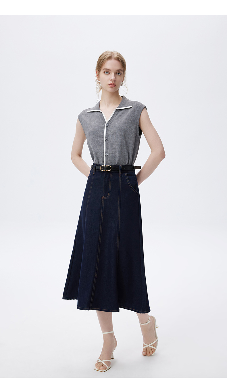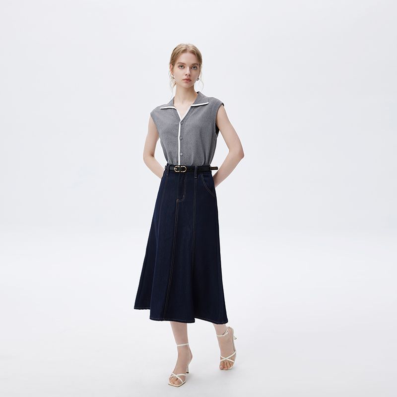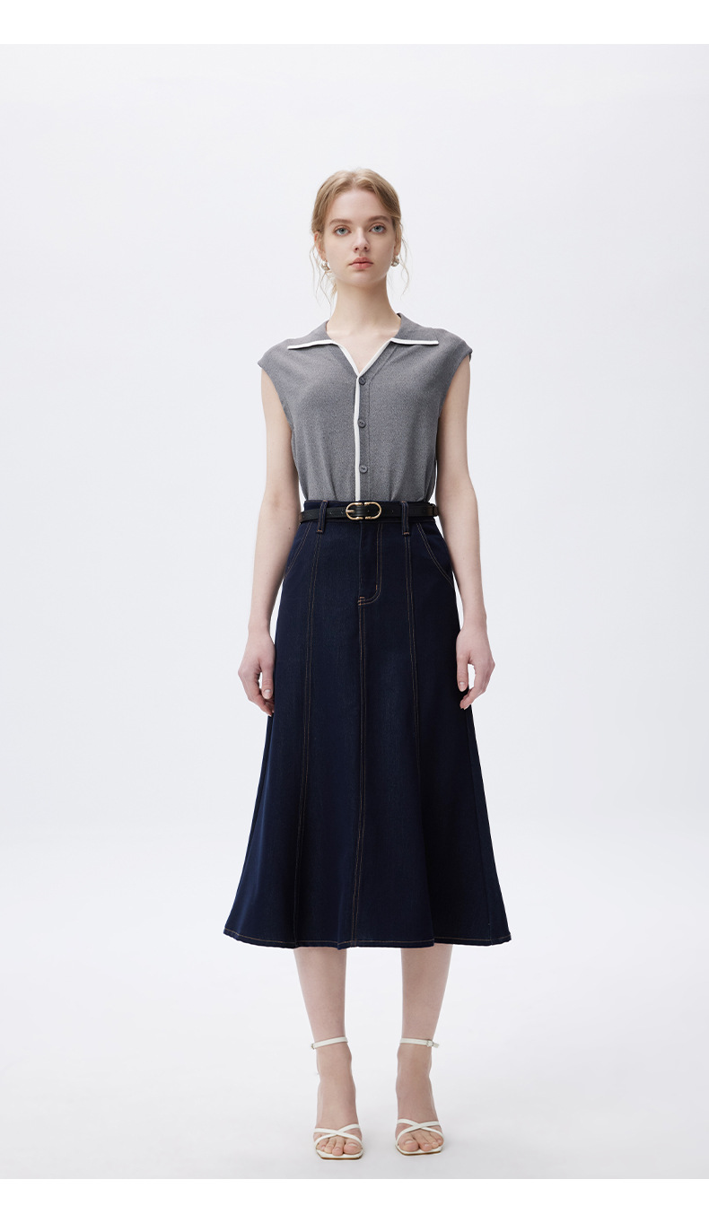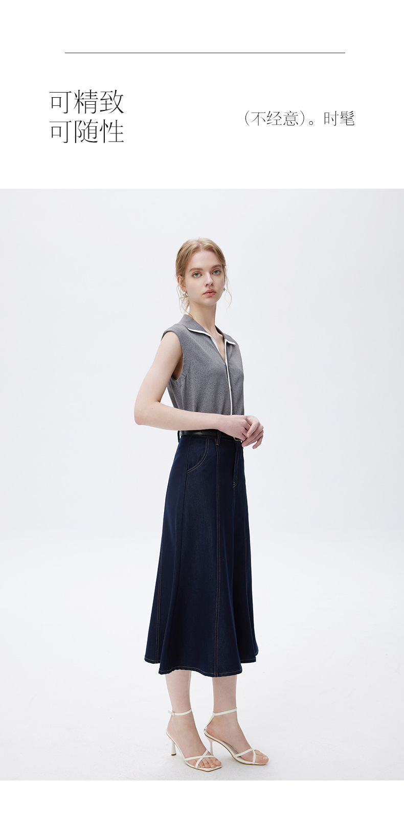 2025 신상 데님 미드 스커트 얇은 주름 방지 머서라이즈 오리지널 소가죽 변색되지 않는 피쉬테일 스커트 하이 웨이스트 데님 스커트